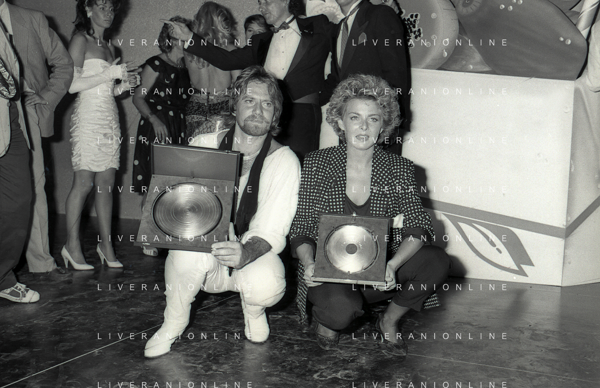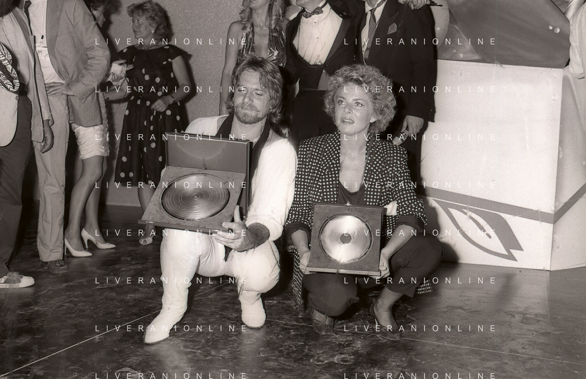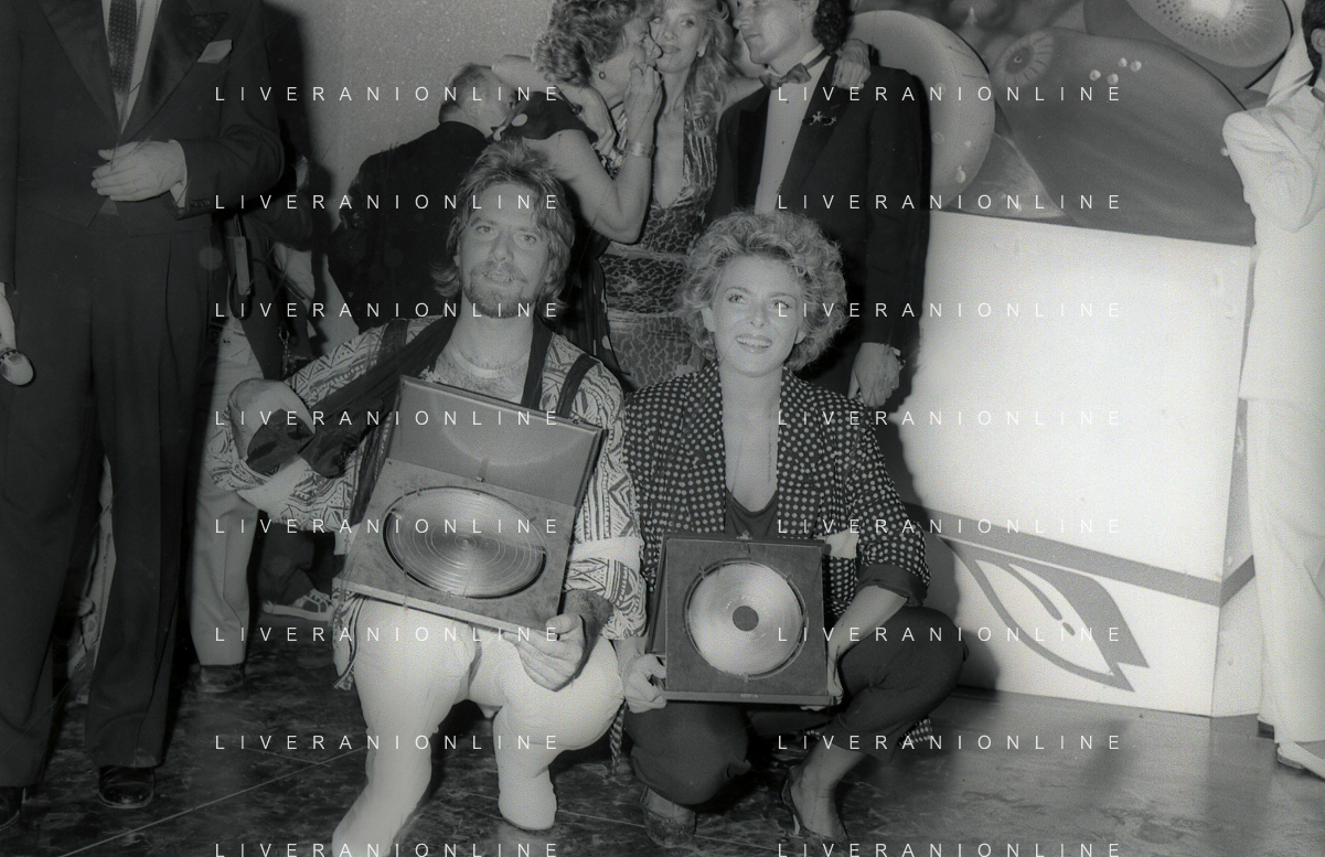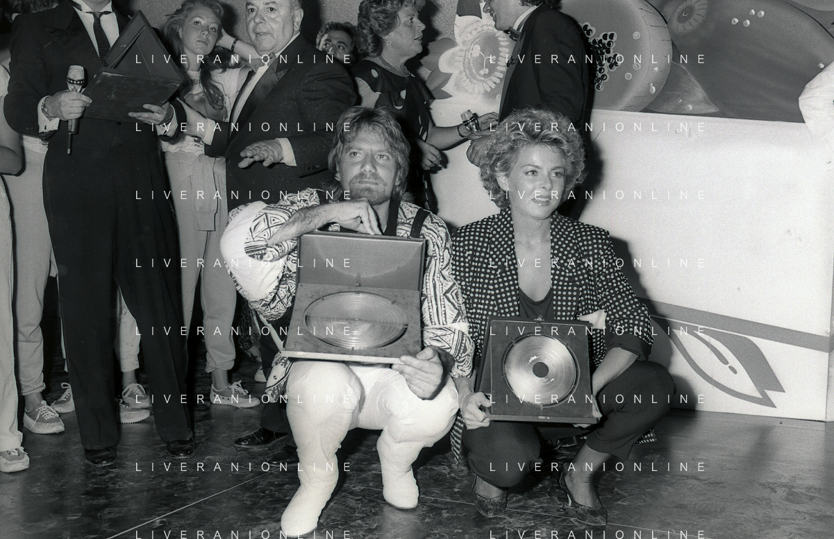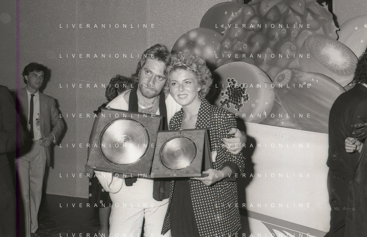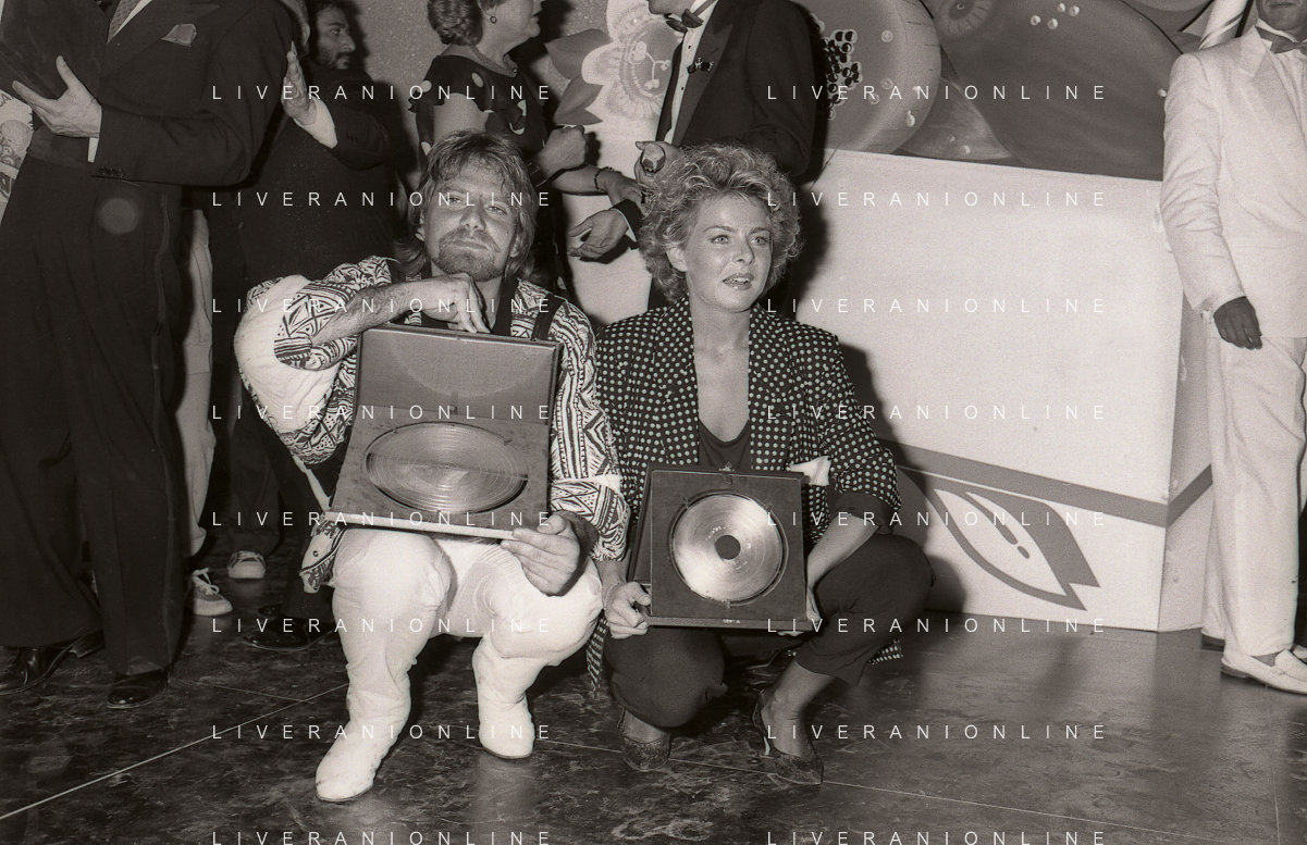NEG-RETROSPETTIVA TONY ESPOSITO MUSICISTA-PERCUSSIONISTA E CANTAUTORE NELLA FOTO TONY ESPOSITO NELL'ANNO 1984 A SAINT VINCENT CON ROBERTA VOLTOLINI AG ALDO LIVERANI SAS