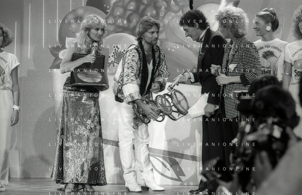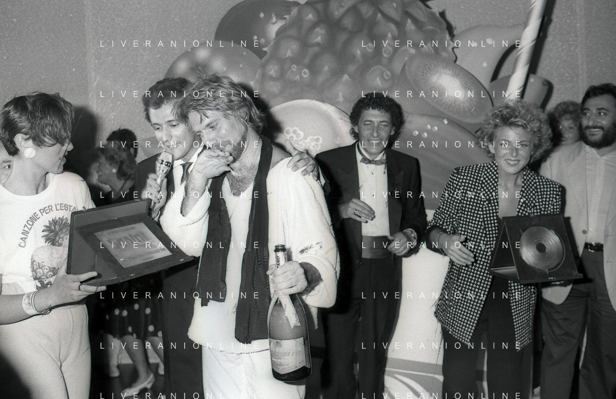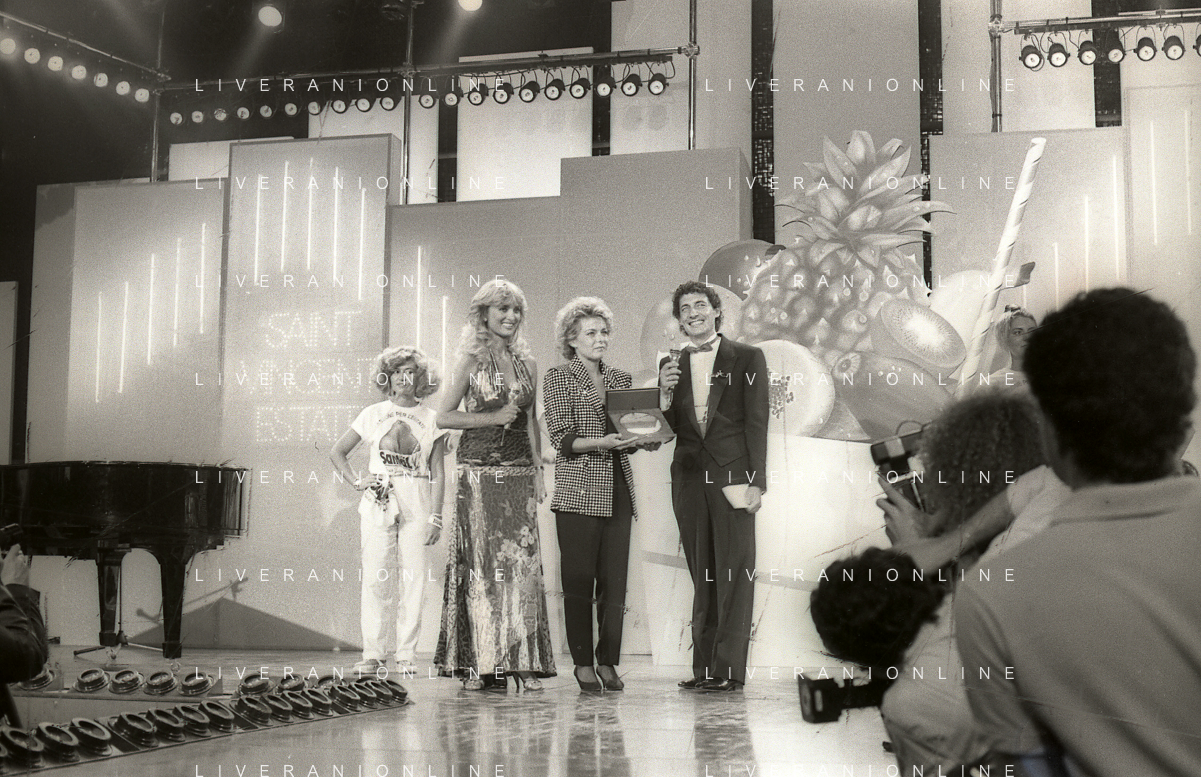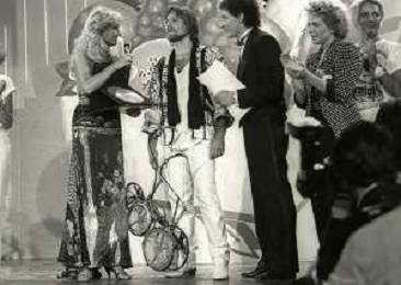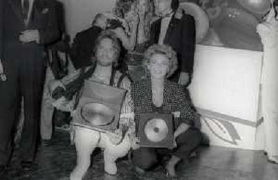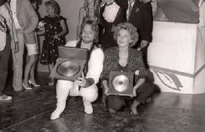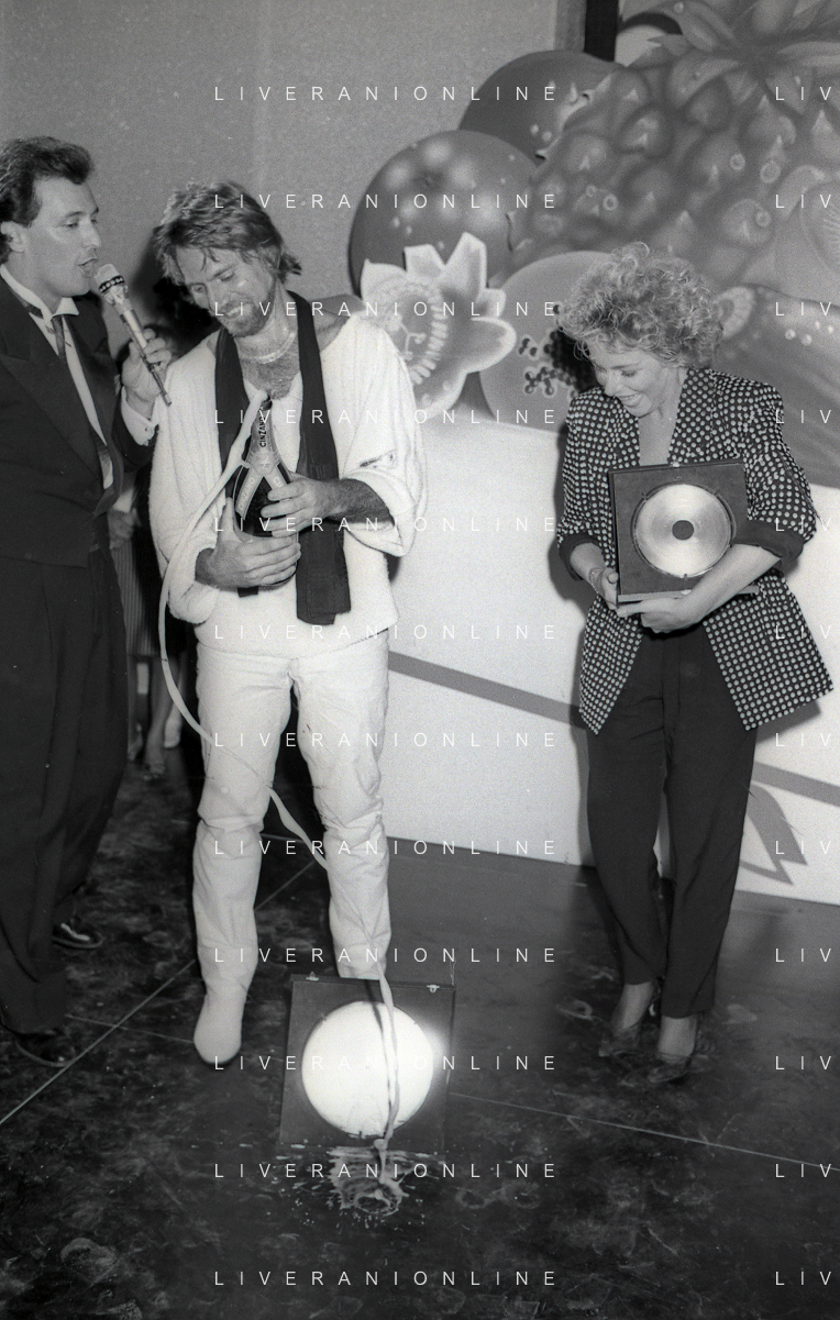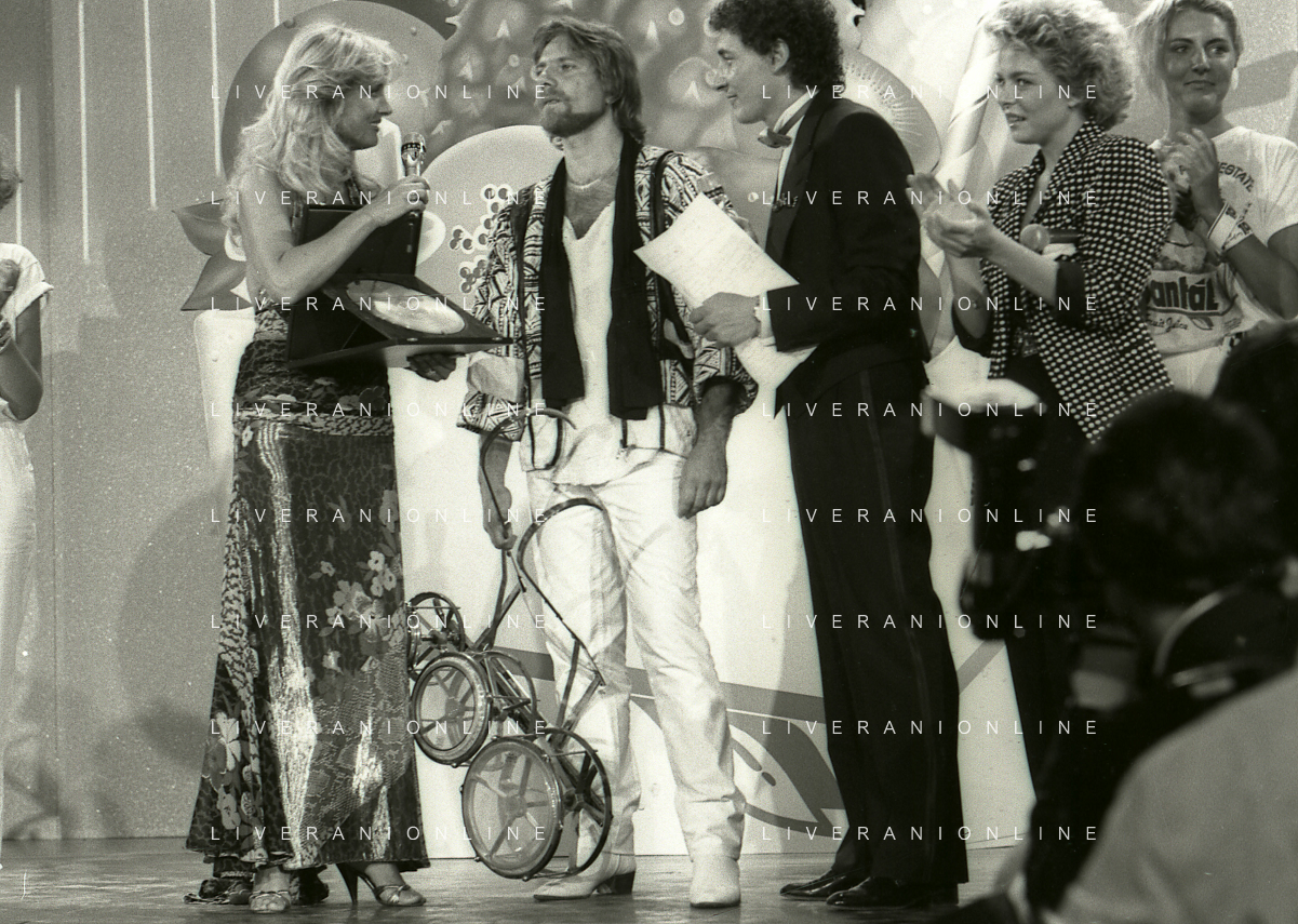 NEG-RETROSPETTIVA TONY ESPOSITO MUSICISTA-PERCUSSIONISTA E CANTAUTORE NELLA FOTO TONY ESPOSITO NELL'ANNO 1984 A SAINT VINCENT CON ROBERTA VOLTOLINI AG ALDO LIVERANI SAS