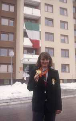 DIAP-RETROSPETTIVA PAOLA MAGONI SCI NELLA FOTO PAOLA MAGONI NELL'ANNO 1984 ALLE OLIMPIADI INVERNALI A SARAJEVO AG ALDO LIVERANI SAS