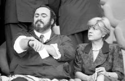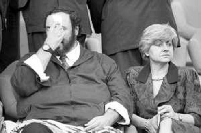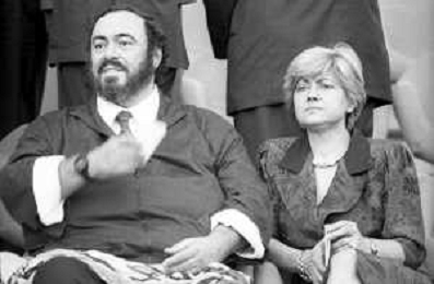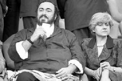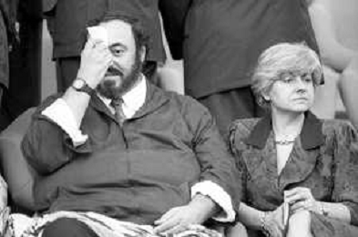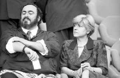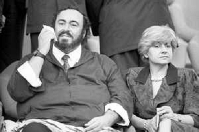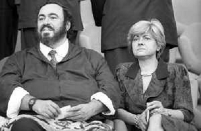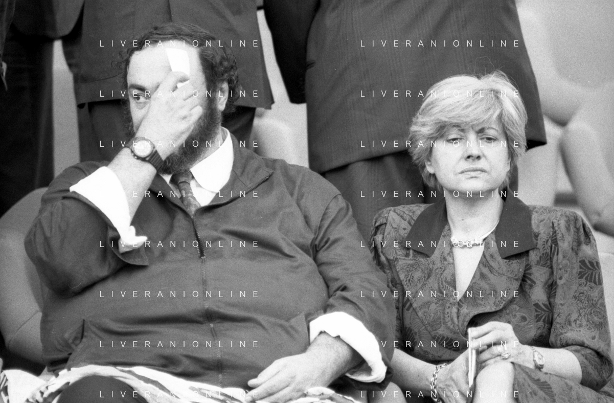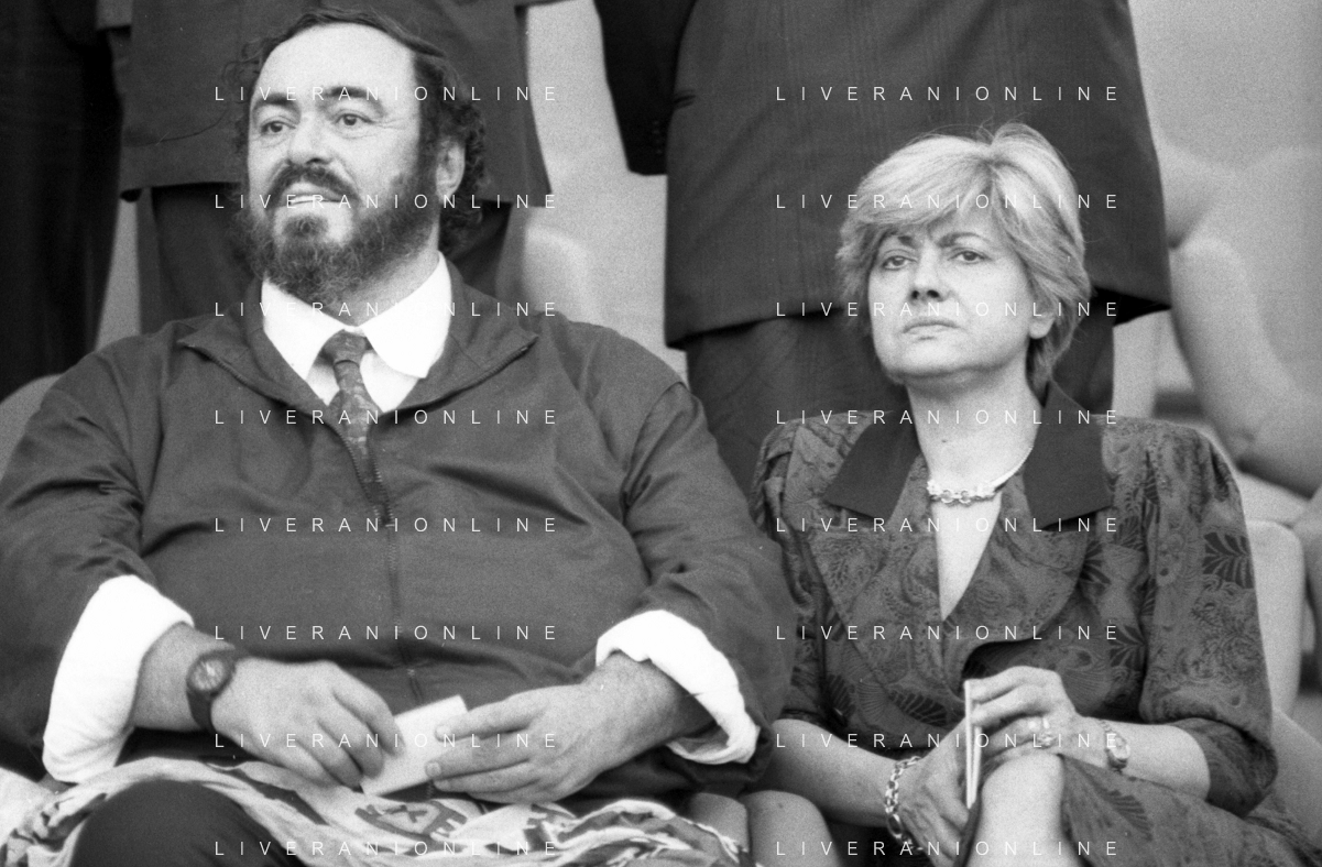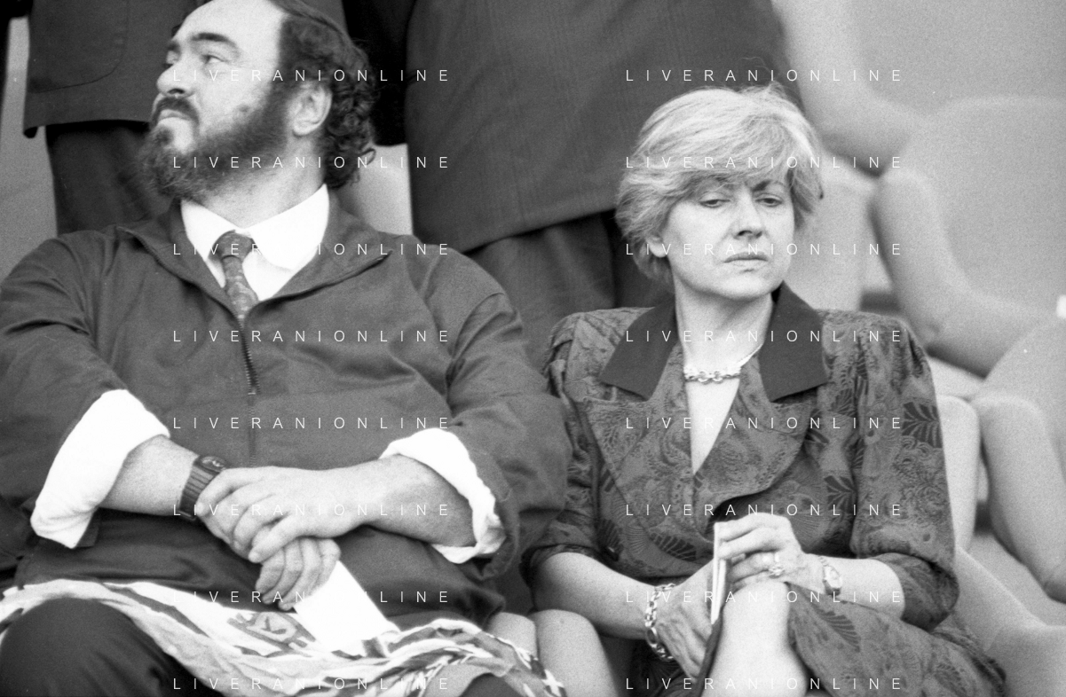 Neg - RETROSPETTIVA LUCIANO PAVAROTTI TENORE NELLA FOTO CON LA PRIMA MOGLIE ADUA VERONI IN TRIBUNA DURANTE I MONDIALI DI CALCIO 'ITALIA '90' NELL'ANNO 1990 AG ALDO LIVERANI SAS