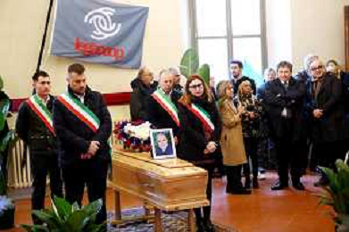 IMOLA 02 03 2024 FUNERALE DI RAFFAELE MAZZANTI PPRESIDENTE LEGACOOP IMOLA NELLA FOTO SINDACO MARCO PANIERI SALUTA LA MOGLIE DI RAFFAELE MAZZANTI FOTO GIANNI SANNA-AG ALDO LIVERANI SAS