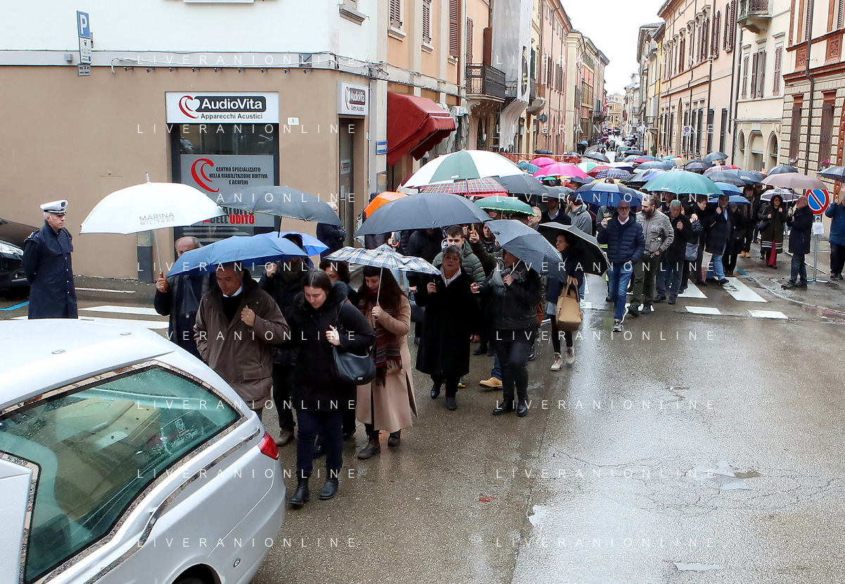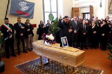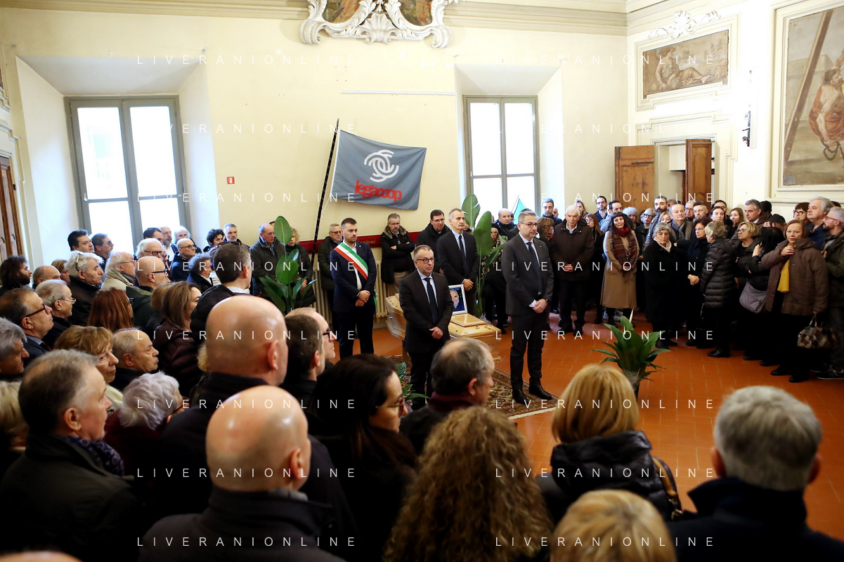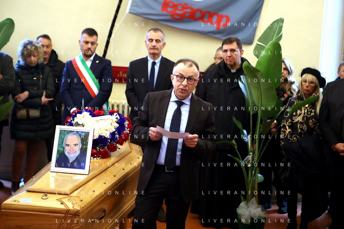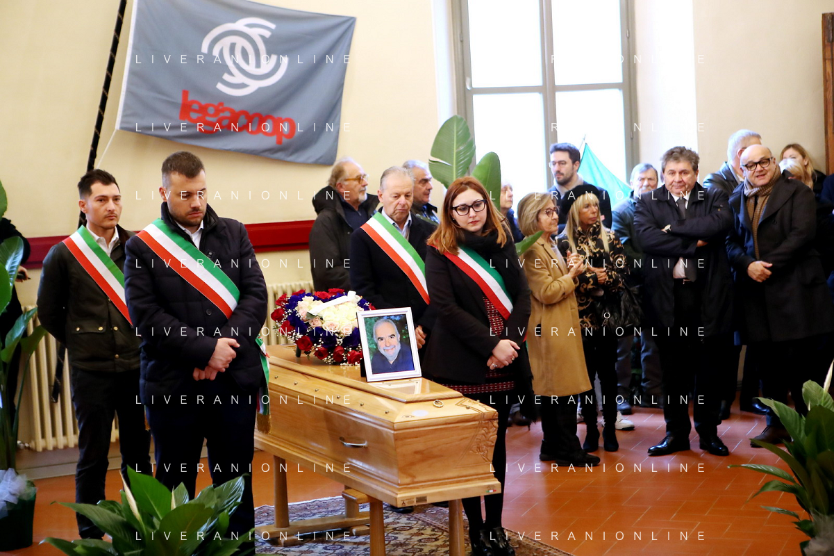 IMOLA 02 03 2024 FUNERALE DI RAFFAELE MAZZANTI PPRESIDENTE LEGACOOP IMOLA NELLA FOTO PICCHETTO D'ONORE DANIELE MONTRONI PRESIDENTE LEGACOOP REGIONALE SIMONE GAMBERINI PRESIDENTE LEGGACOOP NAZIONALE SINDACO MARCO PANIERI FOTO GIANNI SANNA-AG ALDO LIVERANI SAS