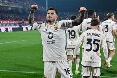 TVRG Monza vs Roma nella foto Leandro Paredes (Roma) esulta dopo il gol del 4 a 0 Monza 02-03-2024 U-Power Stadium Campionato Serie A TIM - 27a giornata foto Roberto Garavaglia/Agenzia Aldo Liverani sas