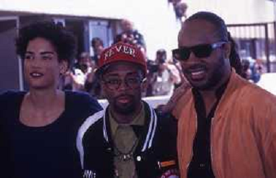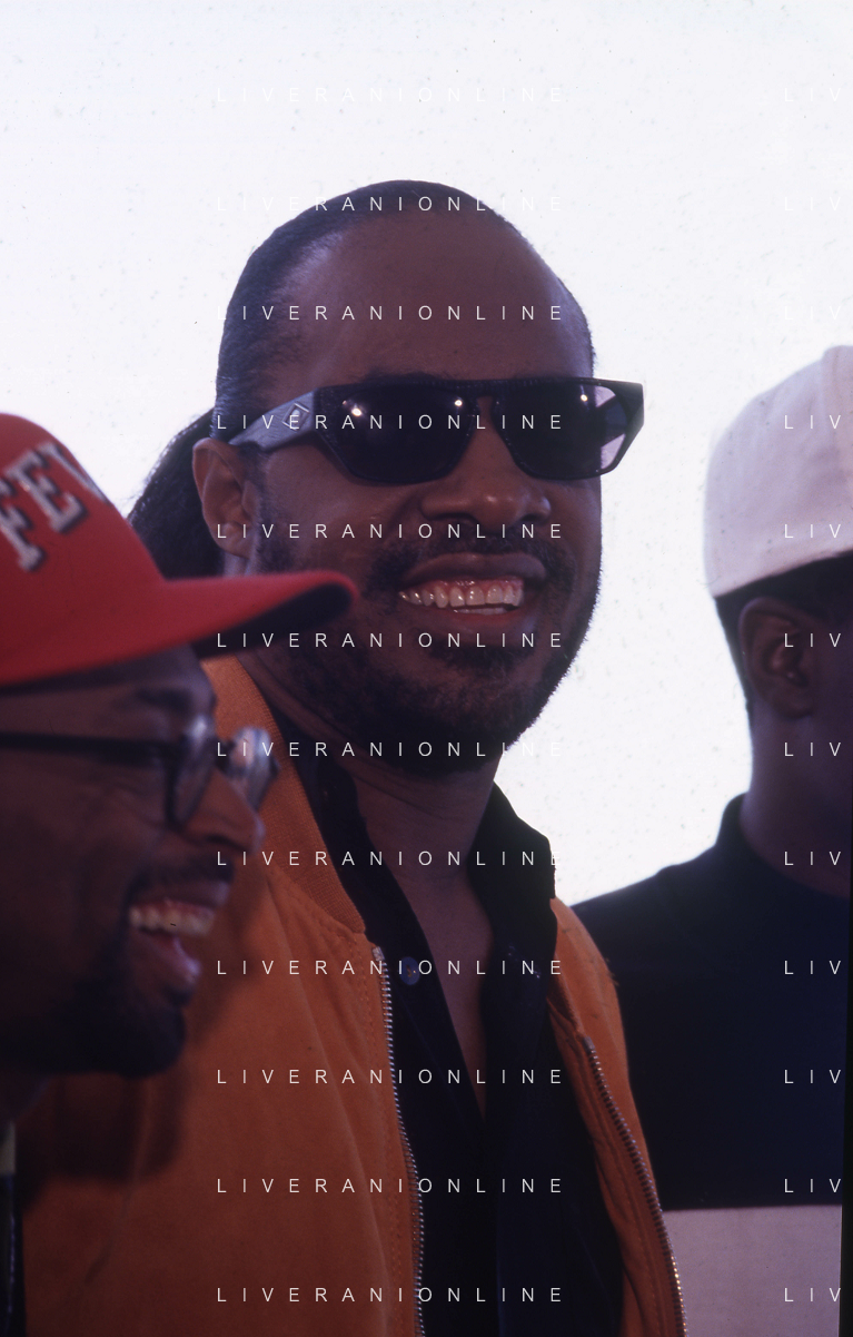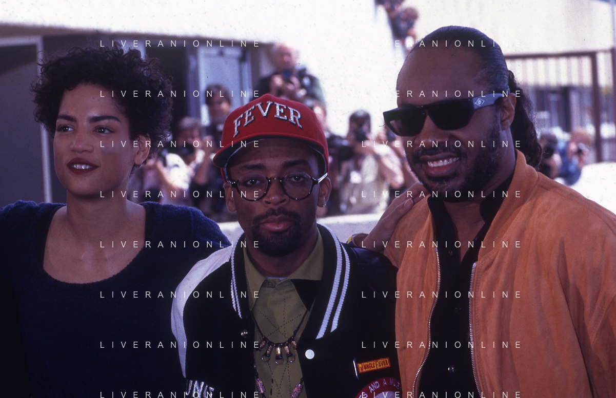 DIAP-RETROSPETTIVA SPIKE LEE ATTORE NELLA FOTO SPIKE LEE NELL'ANNO 1991 A CANNES CON STEVIE WONDER E VERONICA WEBB FOTO RENATO LANI-AG ALDO LIVERANI SAS