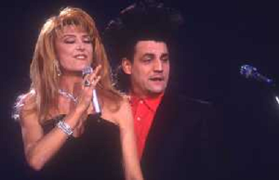 DIAP-RETROSPETTIVA FRANCESCO SALVI ATTORE E CANTANTE NELLA FOTO FRANCESCO SALVI CON GABIELLA CARLUCCI A SANREMO NELL'ANNO 1990 AG ALDO LIVERANI SAS