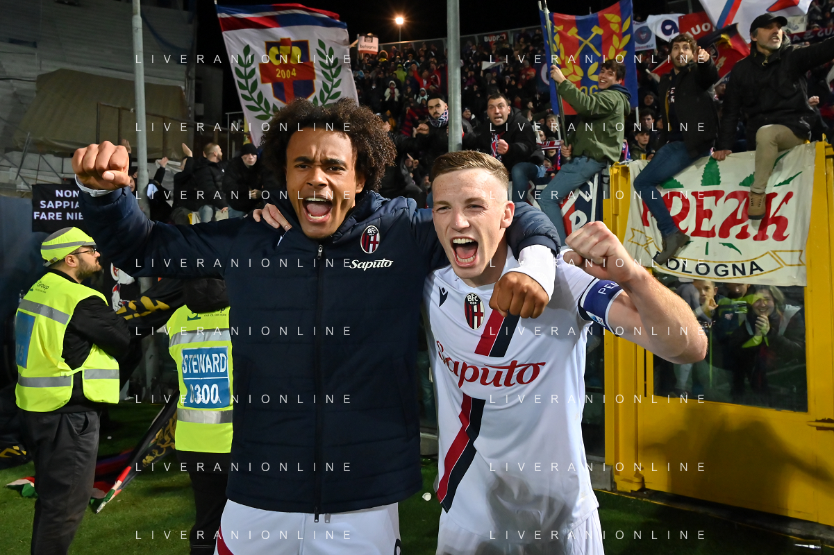 TVRG Atalanta vs Bologna nella foto Joshua Zirkzee (Bologna) e Lewis Ferguson (Bologna) esultanza a fine partita Bergamo 03-03-2024 Gewiss Stadium Campionato Serie A TIM - 27a giornata foto Roberto Garavaglia/Agenzia Aldo Liverani sas