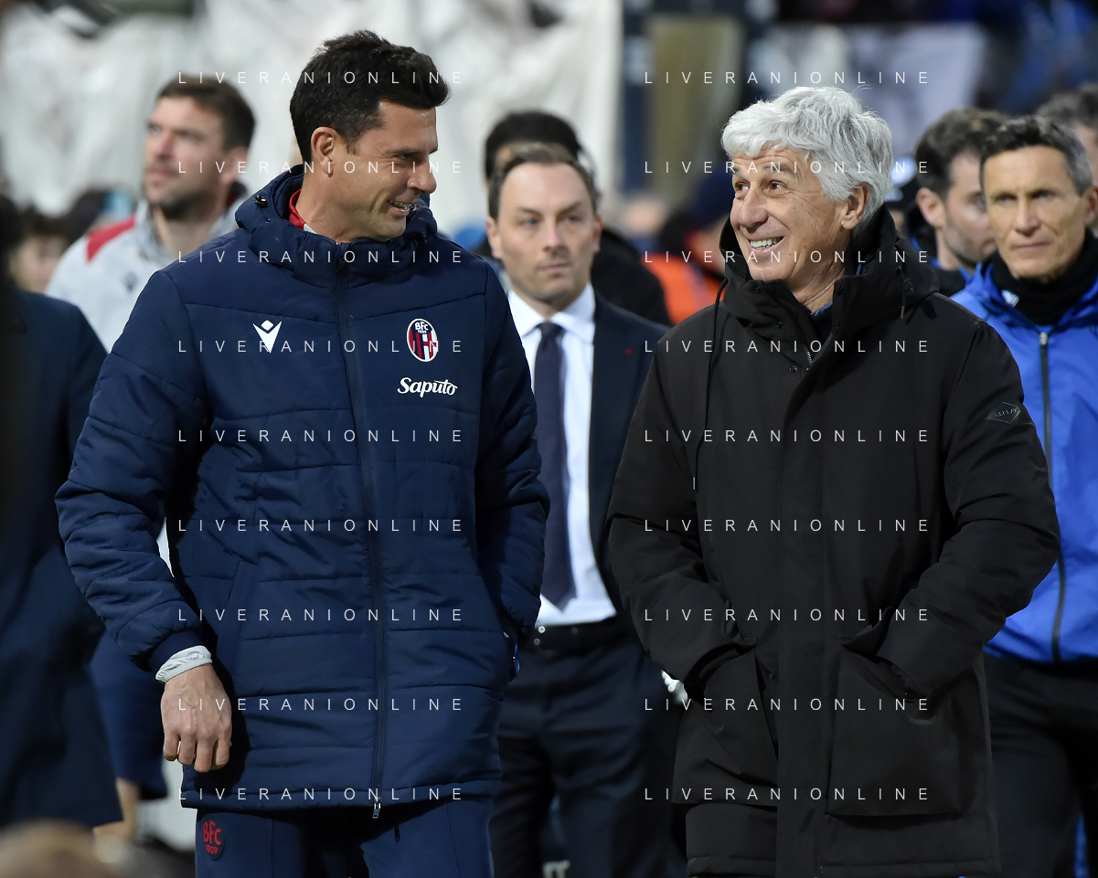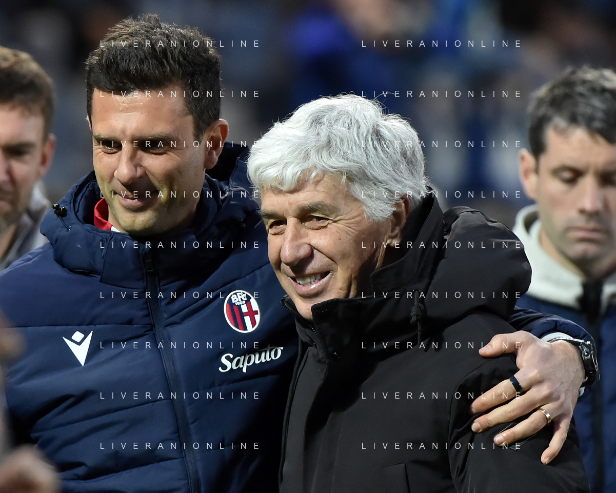 TVRG Atalanta vs Bologna nella foto Thiago Motta allenatore Bologna SX e Gian Piero Gasperini allenatore Atalanta DX Bergamo 03-03-2024 Gewiss Stadium Campionato Serie A TIM - 27a giornata foto Roberto Garavaglia/Agenzia Aldo Liverani sas
