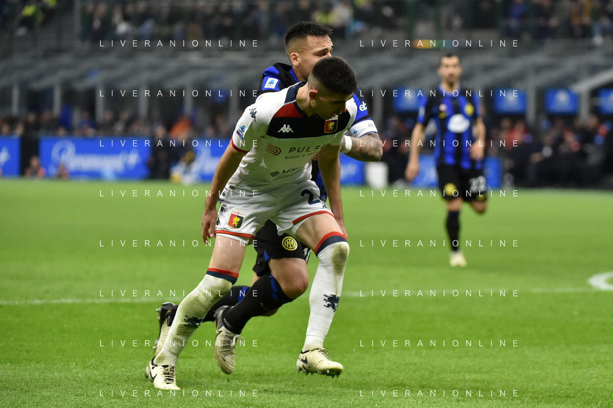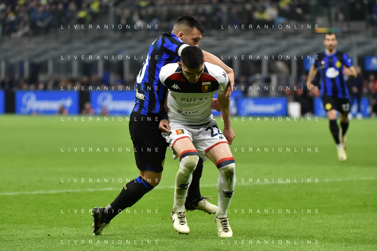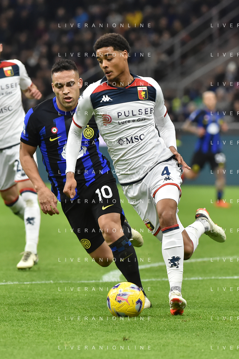 Inter vs Genoa nella foto Koni De Winter (Genoa) e sulla SX Lautaro Martinez (Inter) Milano 04-03-2024 Stadio Giuseppe Meazza - San Siro Campionato Serie A TIM - 27a giornata foto Roberto Garavaglia/Agenzia Aldo Liverani sas/ AGENZIA ALDO LIVERANI SAS