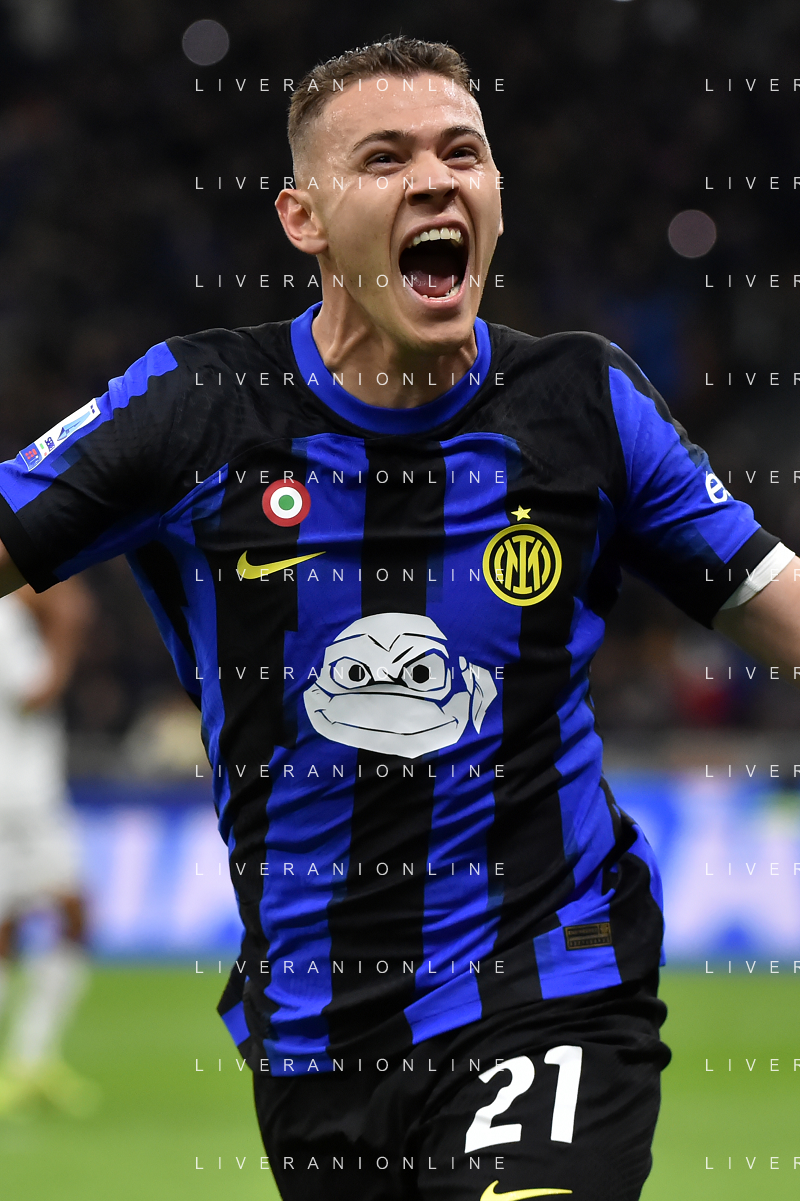 Inter vs Genoa nella foto Kristjan Asllani (Inter) esulta dopo il gol dell'1 a 0 Milano 04-03-2024 Stadio Giuseppe Meazza - San Siro Campionato Serie A TIM - 27a giornata foto Roberto Garavaglia/Agenzia Aldo Liverani sas/ AGENZIA ALDO LIVERANI SAS