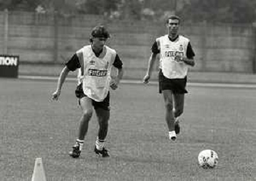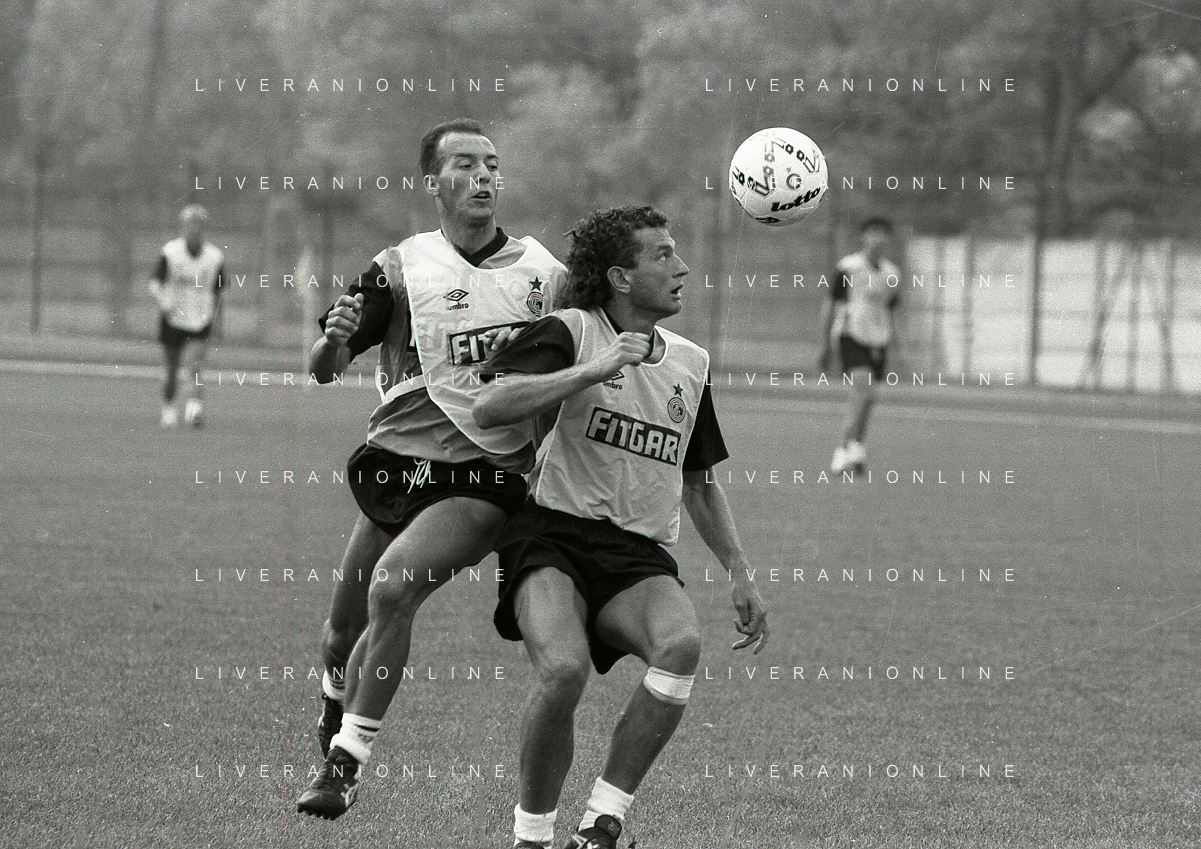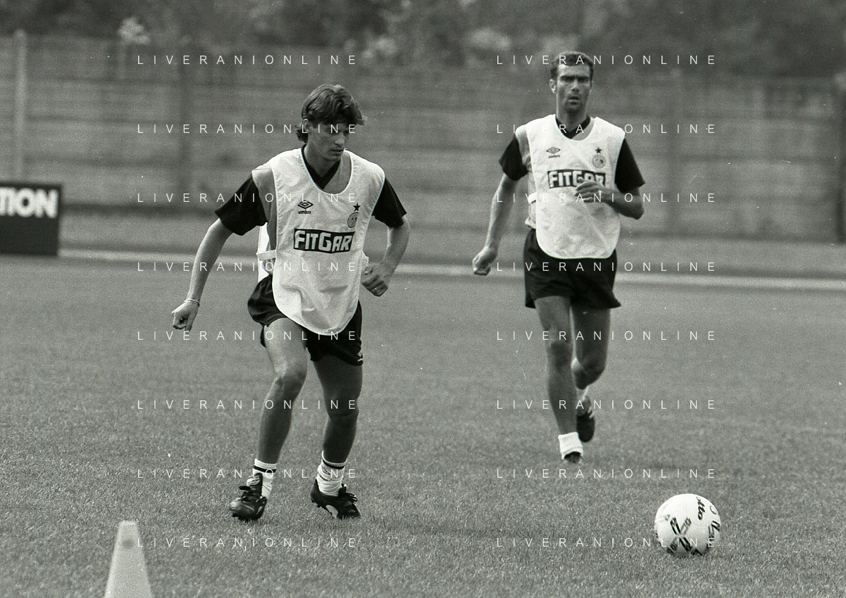 NEG-1992 ALLENAMENTO INTER RITIRO ESTIVO NELLA FOTO BENIAMINO ABATE E JURGEN KLINSMANN AG ALDO LIVERANI SAS