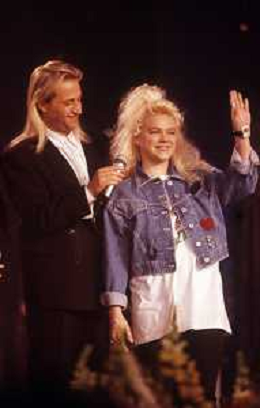 DIAP-RETRSPETTIVA NIKKA COSTA CANTANTE NELLA FOTO NIKKA COSTA CON AMEDEO MINGHI A SANREMO NELL'ANNO 1990 AG ALDO LIVERANI SAS