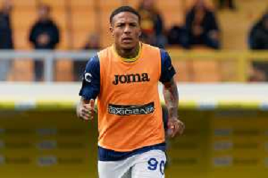 TVEM Michael Folorunsho of Hellas Verona warms up during the Italian soccer Serie A match Lecce vs Hellas Verona on March 10, 2024 at Via del Mare Stadium in Lecce, Italy. Photo Emmanuele Mastrodonato/agenzia Liverani/AGENZIA ALDO LIVERANI SAS