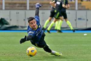 TVEM Lorenzo Montipò of Hellas Verona warms up during the Italian soccer Serie A match Lecce vs Hellas Verona on March 10, 2024 at Via del Mare Stadium in Lecce, Italy. Photo Emmanuele Mastrodonato/agenzia Liverani/AGENZIA ALDO LIVERANI SAS