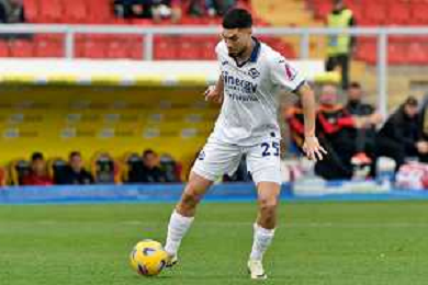TVEM Jackson Tchatchoua of Hellas Verona warms up during the Italian soccer Serie A match Lecce vs Hellas Verona on March 10, 2024 at Via del Mare Stadium in Lecce, Italy. Photo Emmanuele Mastrodonato/agenzia Liverani/AGENZIA ALDO LIVERANI SAS