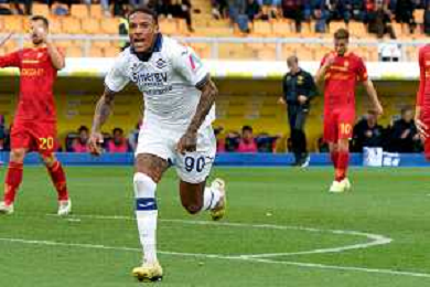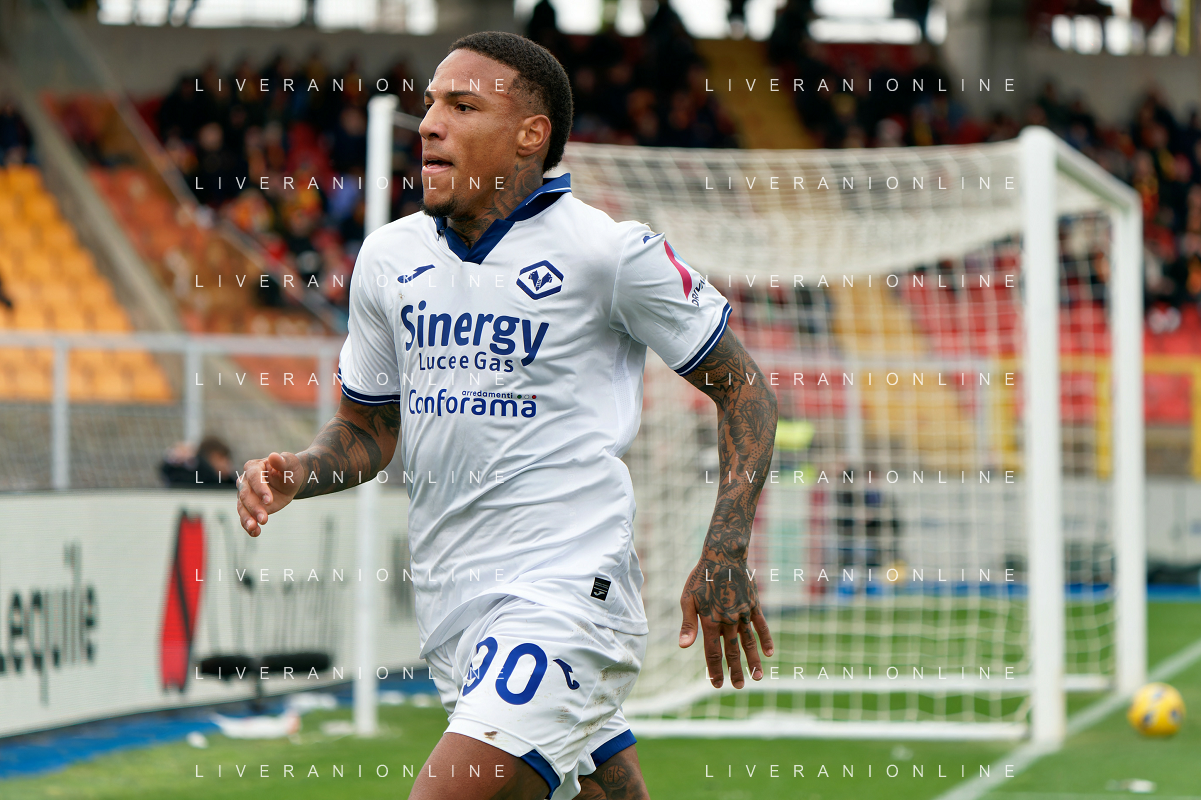 TVEM Michael Folorunsho of Hellas Verona celebrates after scoring a goal during the Italian soccer Serie A match Lecce vs Hellas Verona on March 10, 2024 at Via del Mare Stadium in Lecce, Italy. Photo Emmanuele Mastrodonato/agenzia Liverani/AGENZIA ALDO LIVERANI SAS