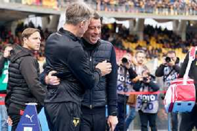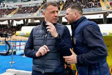 TVEM coach Marco Baroni of Hellas Verona and coach Roberto D’Aversa of US Lecce during the Italian soccer Serie A match Lecce vs Hellas Verona on March 10, 2024 at Via del Mare Stadium in Lecce, Italy. Photo Emmanuele Mastrodonato/agenzia Liverani/AGENZIA ALDO LIVERANI SAS