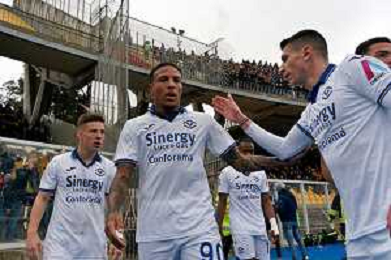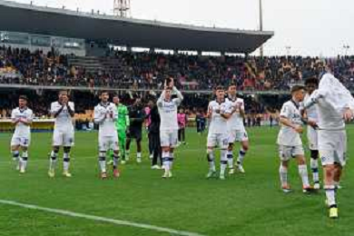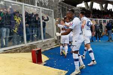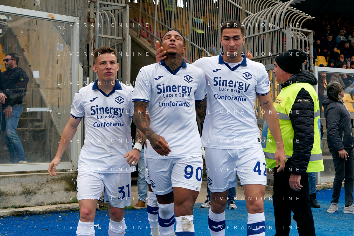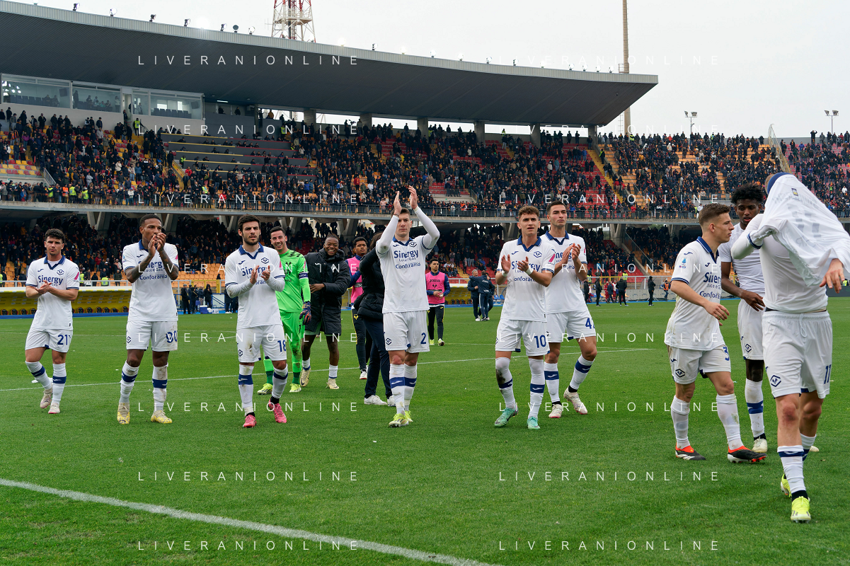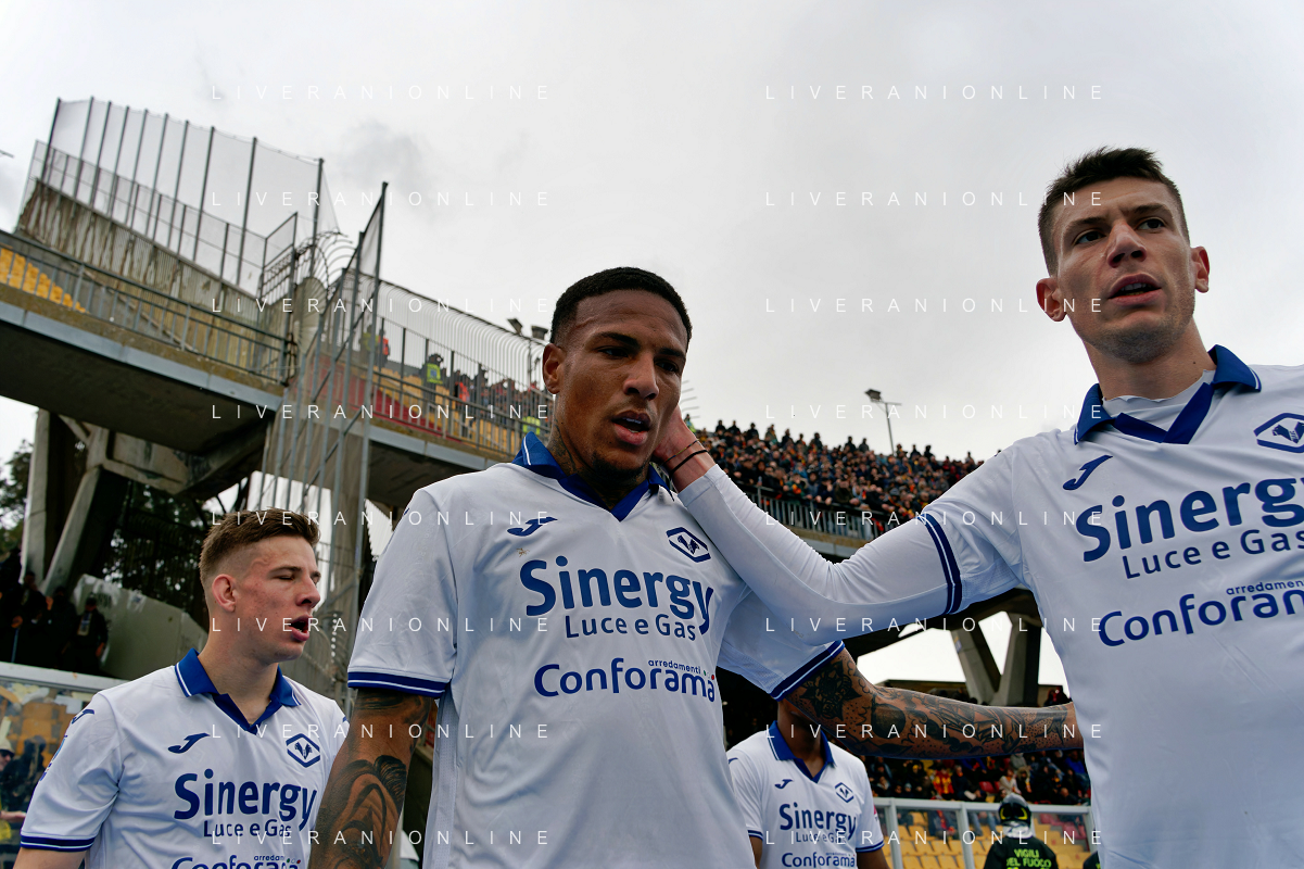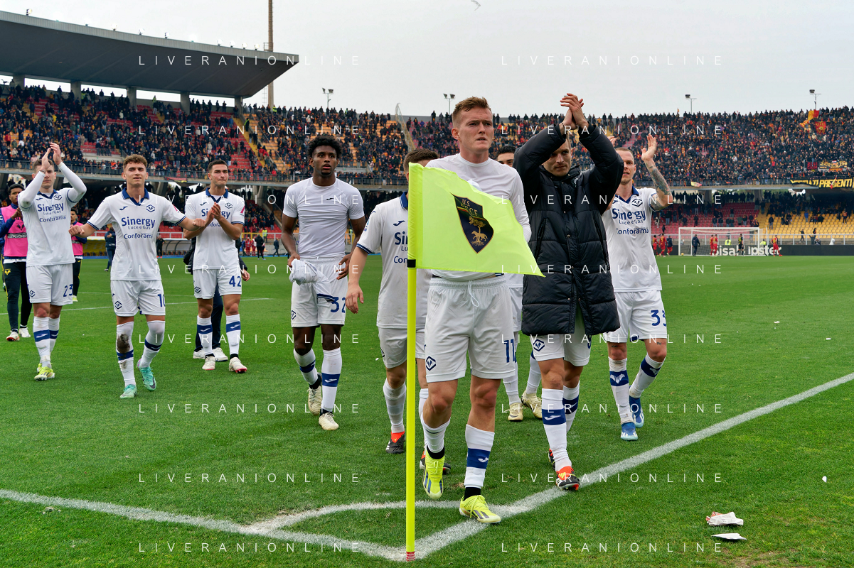 TVEM Players of Hellas Verona celebrates the victory during the Italian soccer Serie A match Lecce vs Hellas Verona on March 10, 2024 at Via del Mare Stadium in Lecce, Italy. Photo Emmanuele Mastrodonato/agenzia Liverani/AGENZIA ALDO LIVERANI SAS