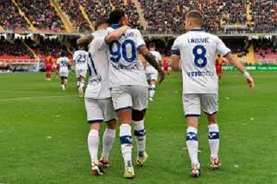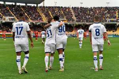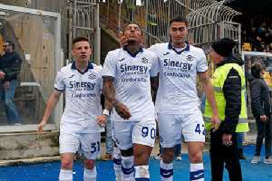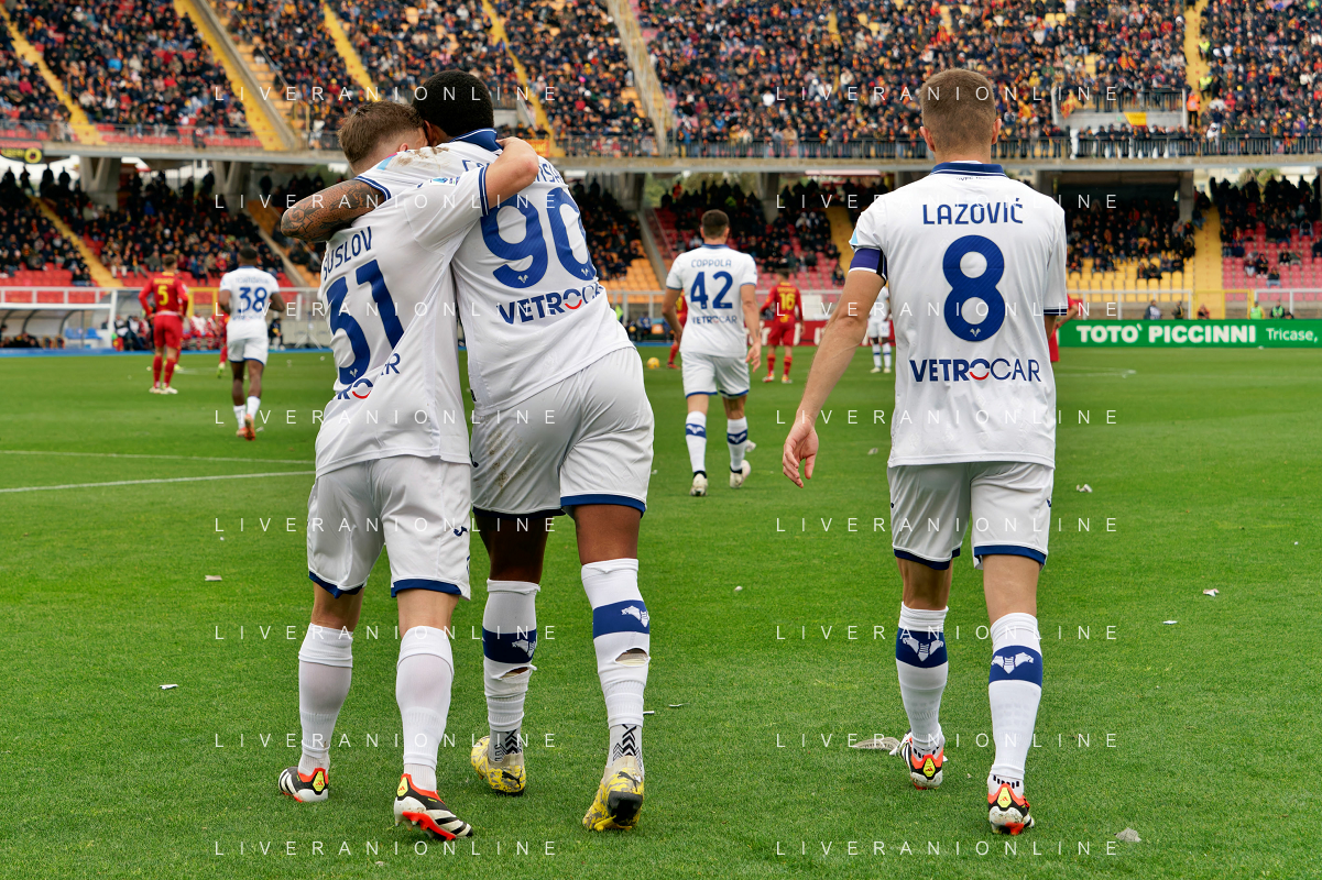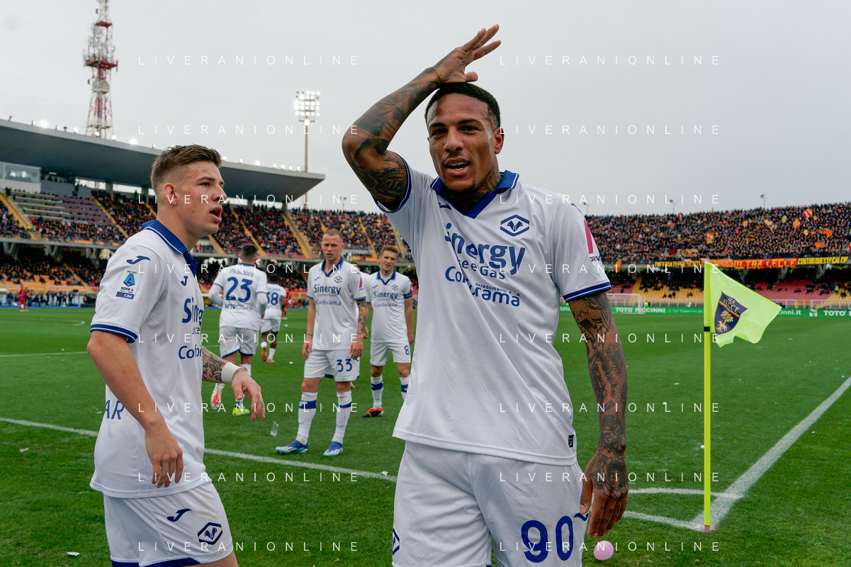 TVEM Michael Folorunsho of Hellas Verona celebrates after scoring a goal with teammates during the Italian soccer Serie A match Lecce vs Hellas Verona on March 10, 2024 at Via del Mare Stadium in Lecce, Italy. Photo Emmanuele Mastrodonato/agenzia Liverani/AGENZIA ALDO LIVERANI SAS