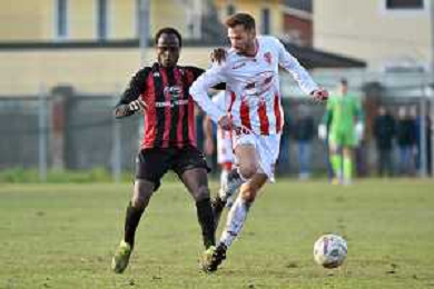 TVRG Sant'Angelo vs Forlì nella foto Louie Gomez (Sant'Angelo) e Simone Greselin (Forlì) Sant'Angelo Lodigiano (LO) 10-03-2024 Stadio comunale Carlo Chiesa Campionato Serie D girone D - 26a giornata foto Roberto Garavaglia/Agenzia Aldo Liverani sas