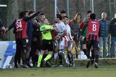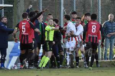 TVRG Sant'Angelo vs Forlì nella foto un momento di tensione tra le squadre Sant'Angelo Lodigiano (LO) 10-03-2024 Stadio comunale Carlo Chiesa Campionato Serie D girone D - 26a giornata foto Roberto Garavaglia/Agenzia Aldo Liverani sas