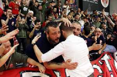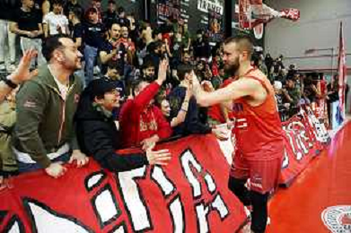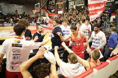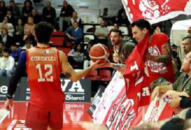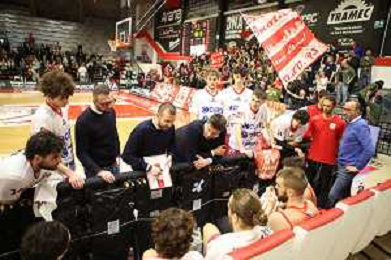 CENTO(FE) 10 03 2024 ANDREA COSTA BASKET-VIRTUS LUMEZZANE SERIE B NELLA FOTO LUCA FAZZI CON I TIFOSI DOPO LA PARTITA ©SANNA/AGENZIA ALDO LIVERANI SAS