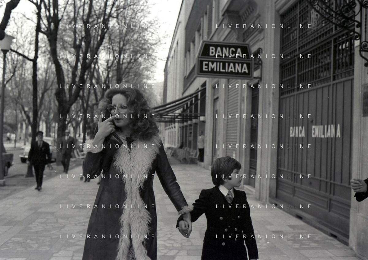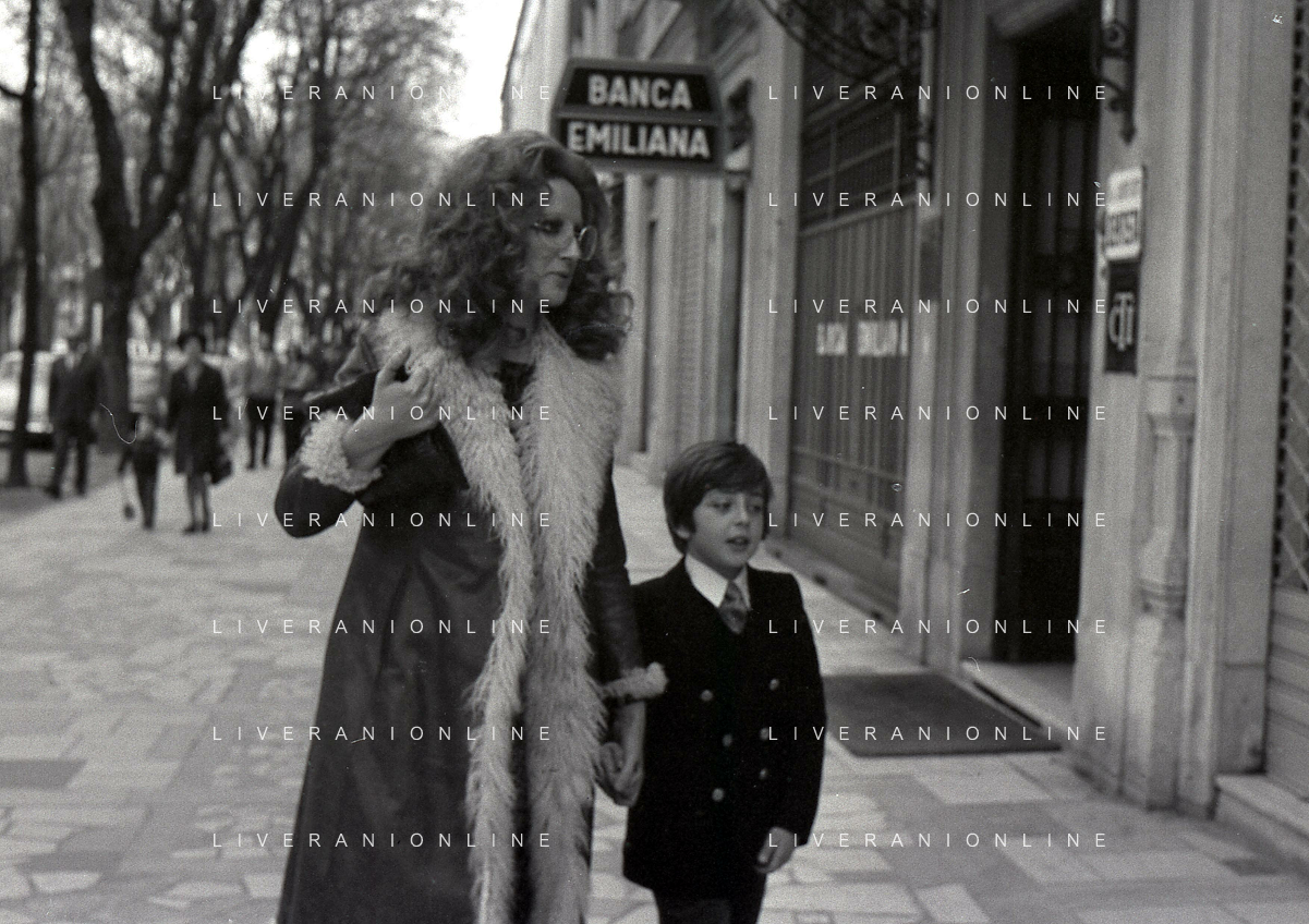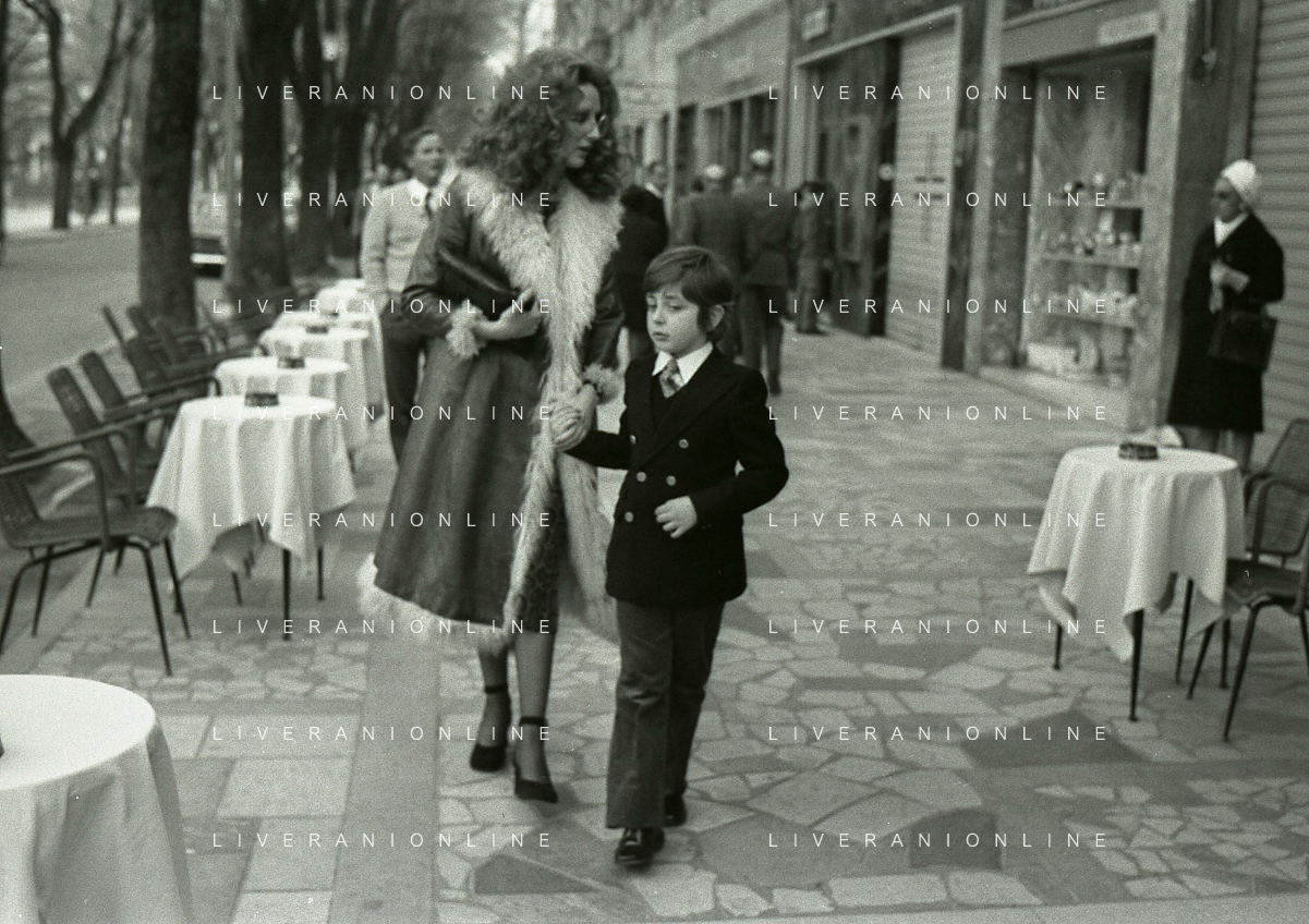 NEG-RETROSPETTIVA MINA MAZZINI CANTANTE NELLA FOTO MINA MAZZINI CON IL PADRE A SALSOMAGGIORE E IL FIGLIO MASSIMILIANO NELL'ANNO 1971 AG ALDO LIVERANI SAS