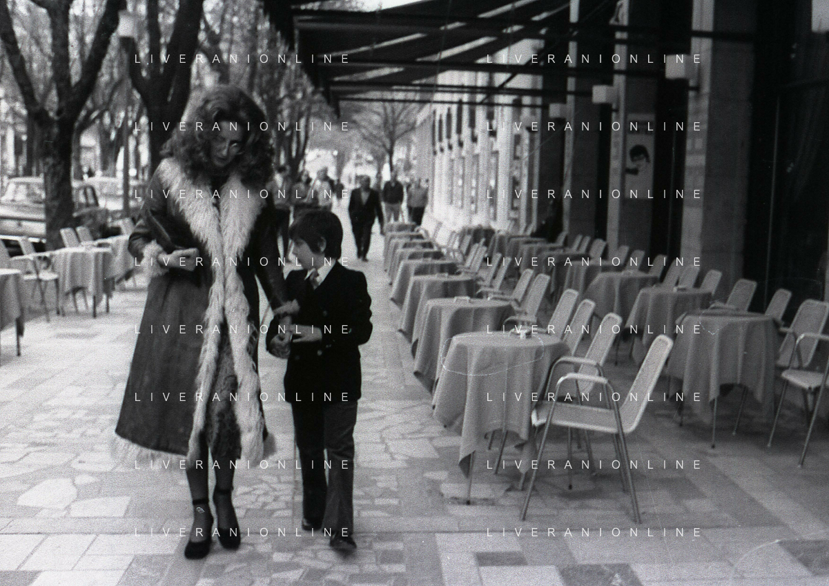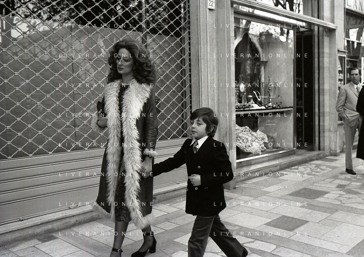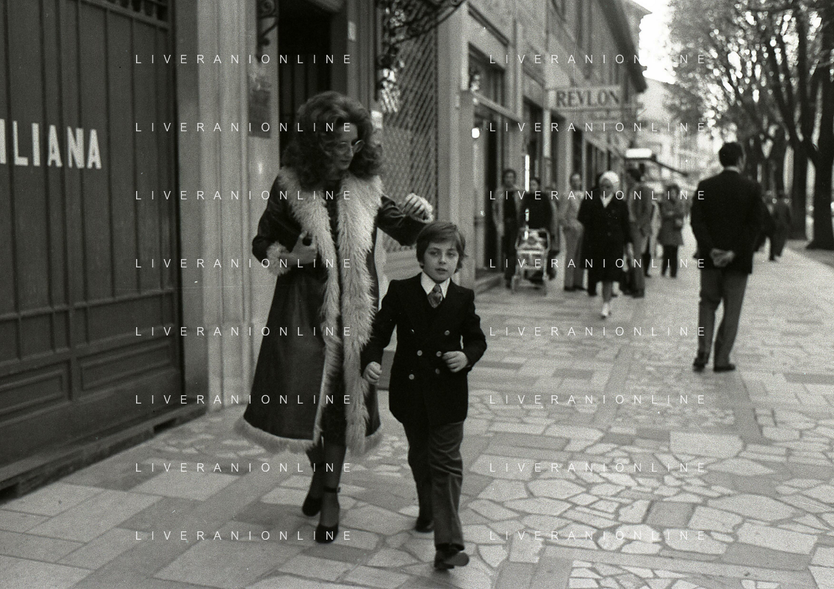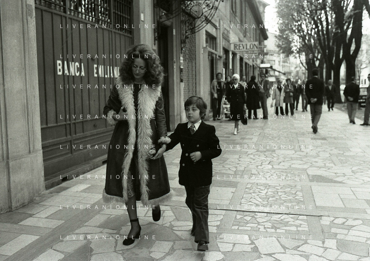 NEG-RETROSPETTIVA MINA MAZZINI CANTANTE NELLA FOTO MINA MAZZINI CON IL PADRE A SALSOMAGGIORE E IL FIGLIO MASSIMILIANO NELL'ANNO 1971 AG ALDO LIVERANI SAS