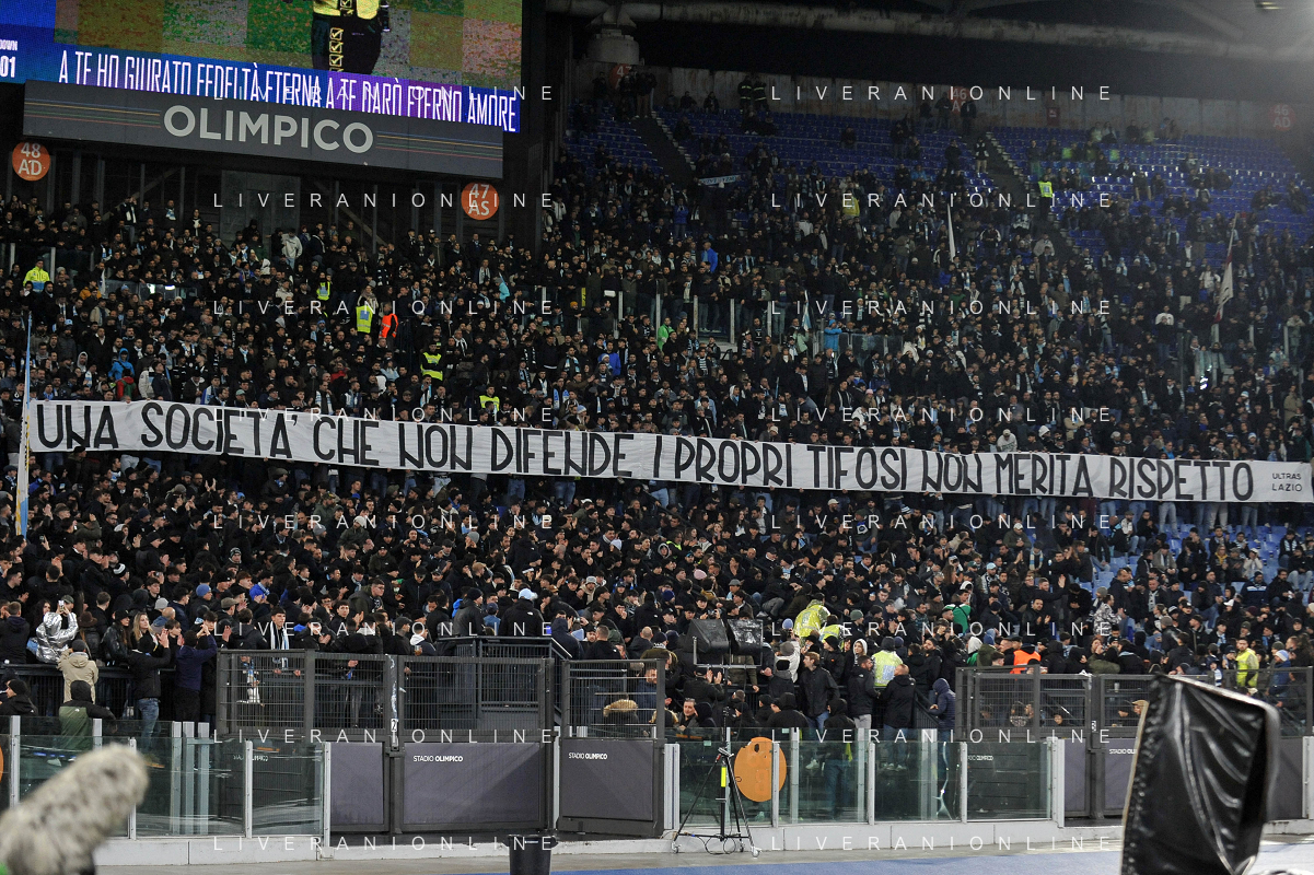 Lazio vs Udinese - Campionato Serie A TIM - 28 giornata - Stadio Olimpico - Roma 11-03-2024 nella foto Striscione polemico curva nord FOTO FEDERICO GAETANO-AG ALDO LIIVERANI SAS