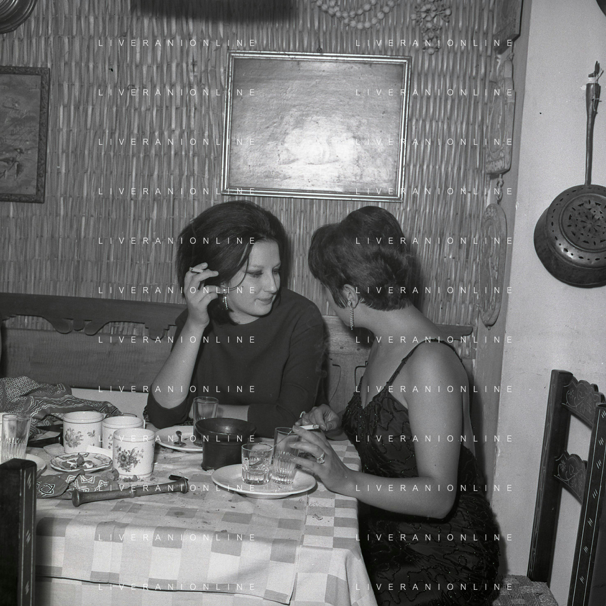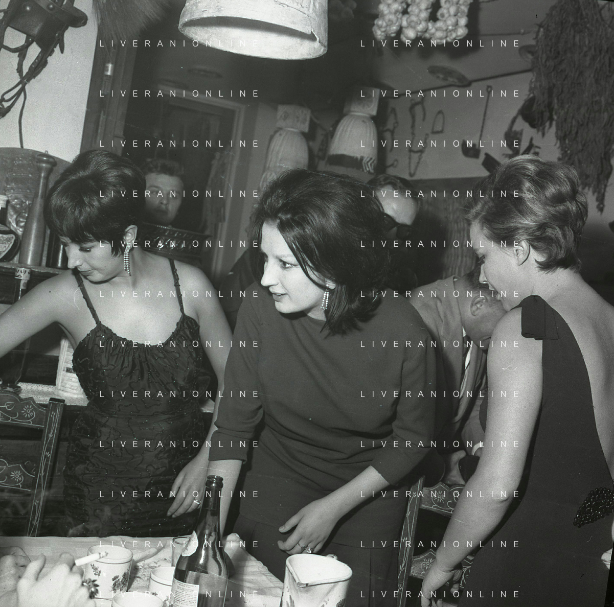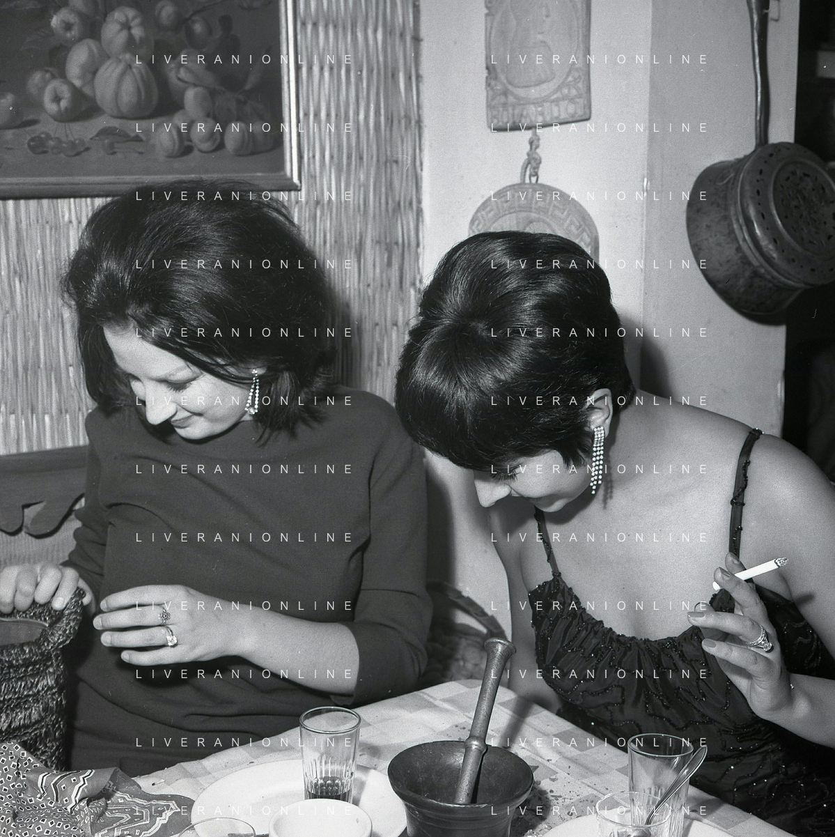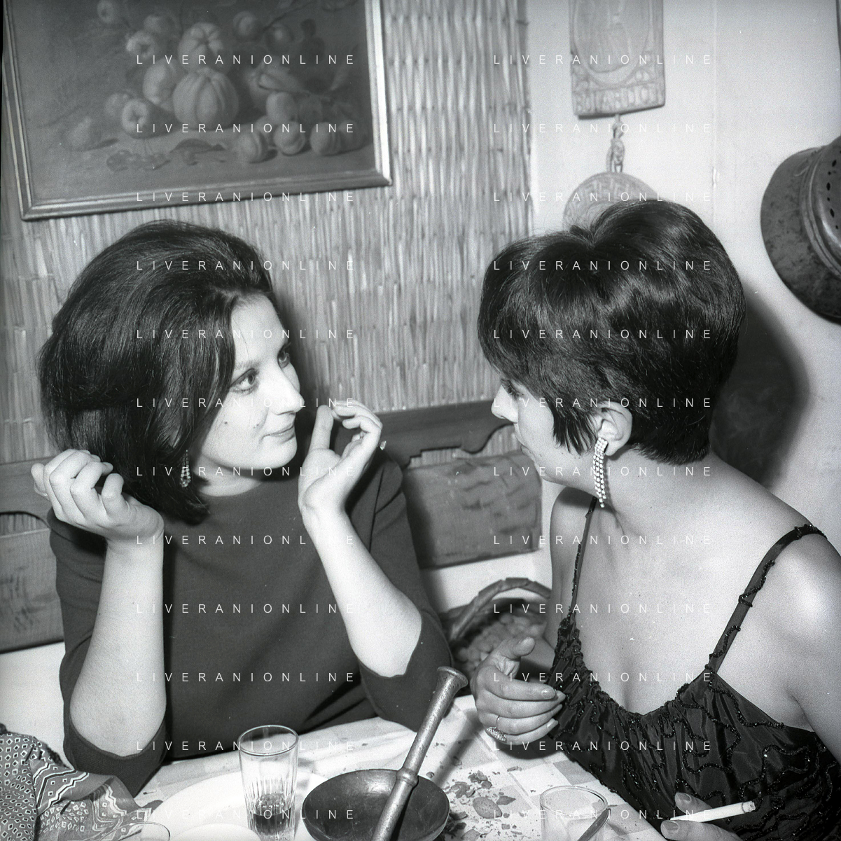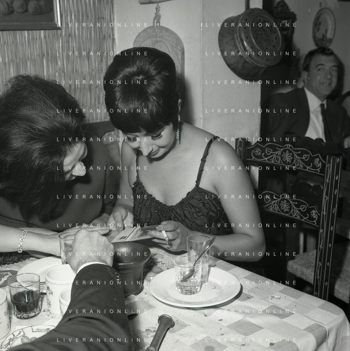 NEG-01-10-1963 MILANO RETROSPETTIVA MINA MAZZINI CANTANTE NELLA FOTO MINA MAZZINI CON MARISA DEL FRATE E CORRADO PANI A MILANO IN UN RISTORANTE AG ALDO LIVERANI SAS