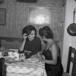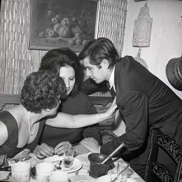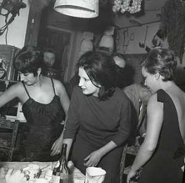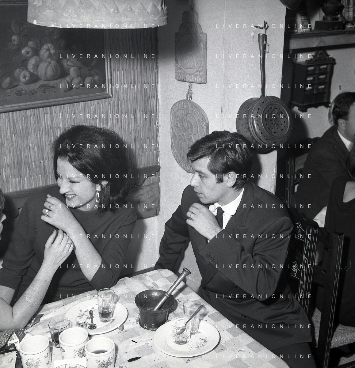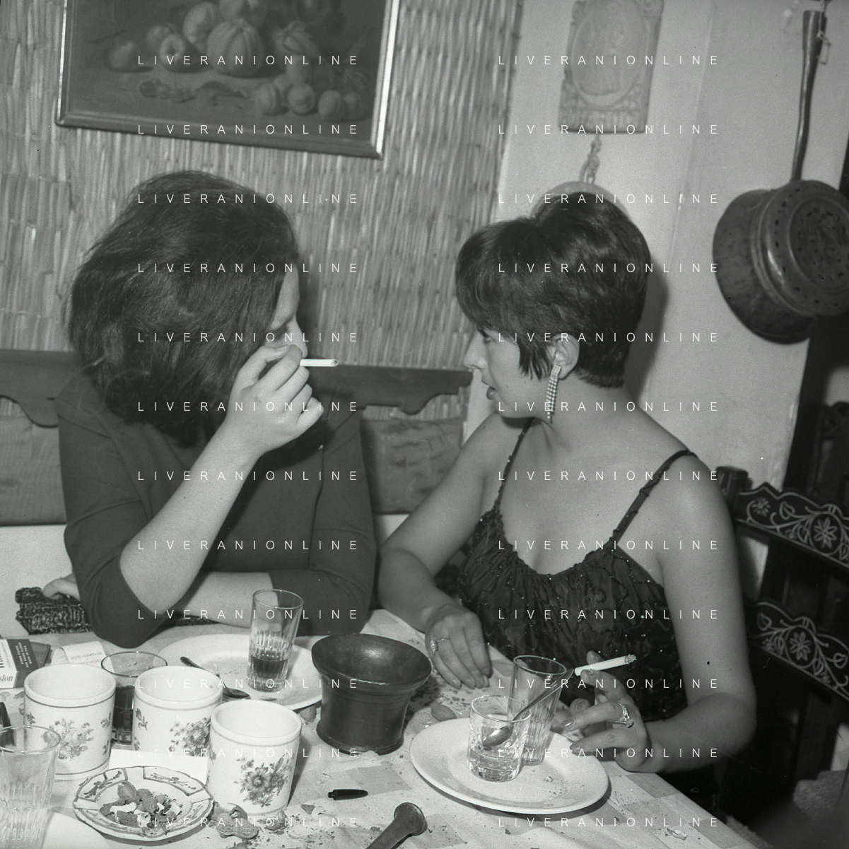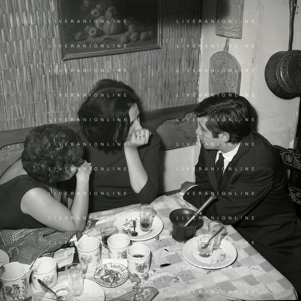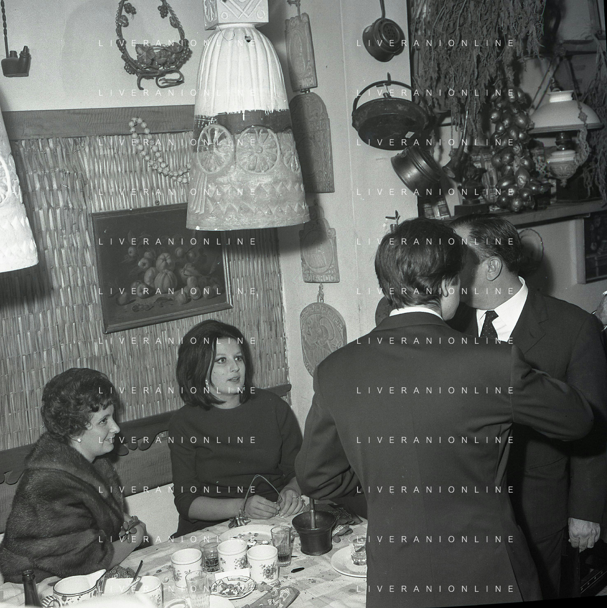 NEG-01-10-1963 MILANO RETROSPETTIVA MINA MAZZINI CANTANTE NELLA FOTO MINA MAZZINI CON MARISA DEL FRATE E CORRADO PANI A MILANO IN UN RISTORANTE AG ALDO LIVERANI SAS