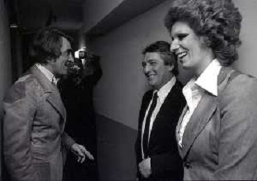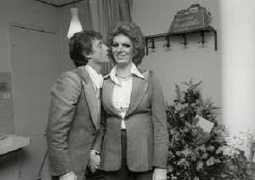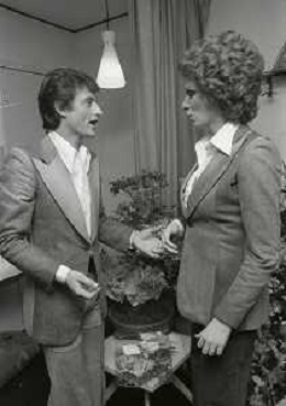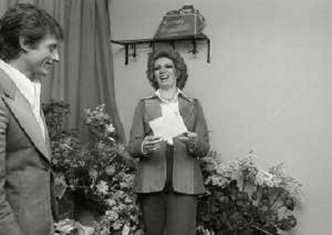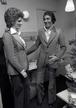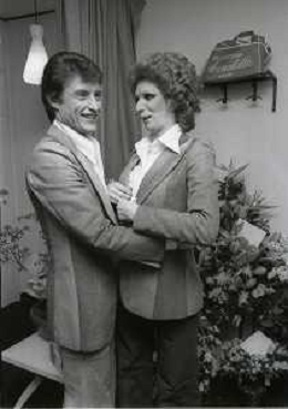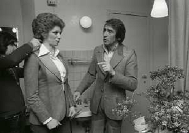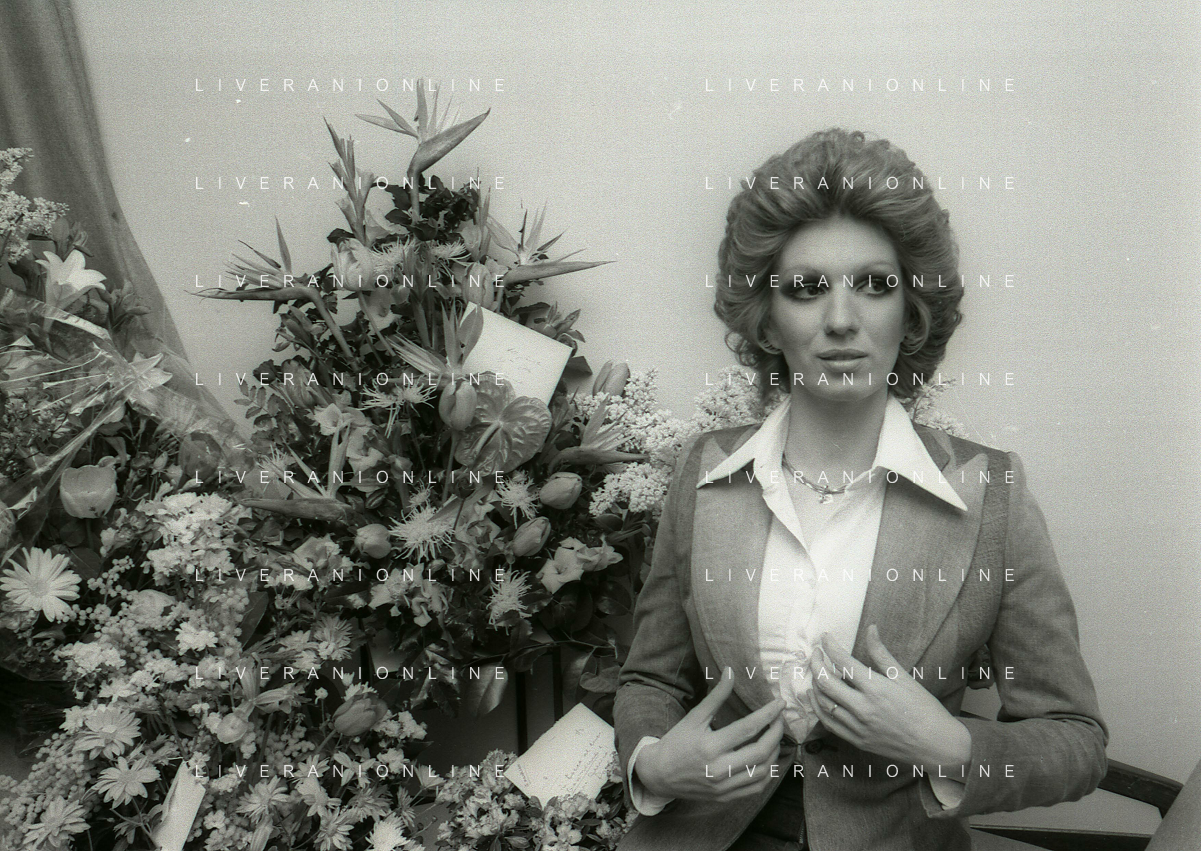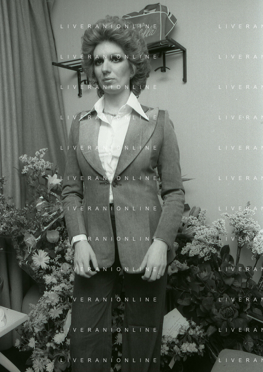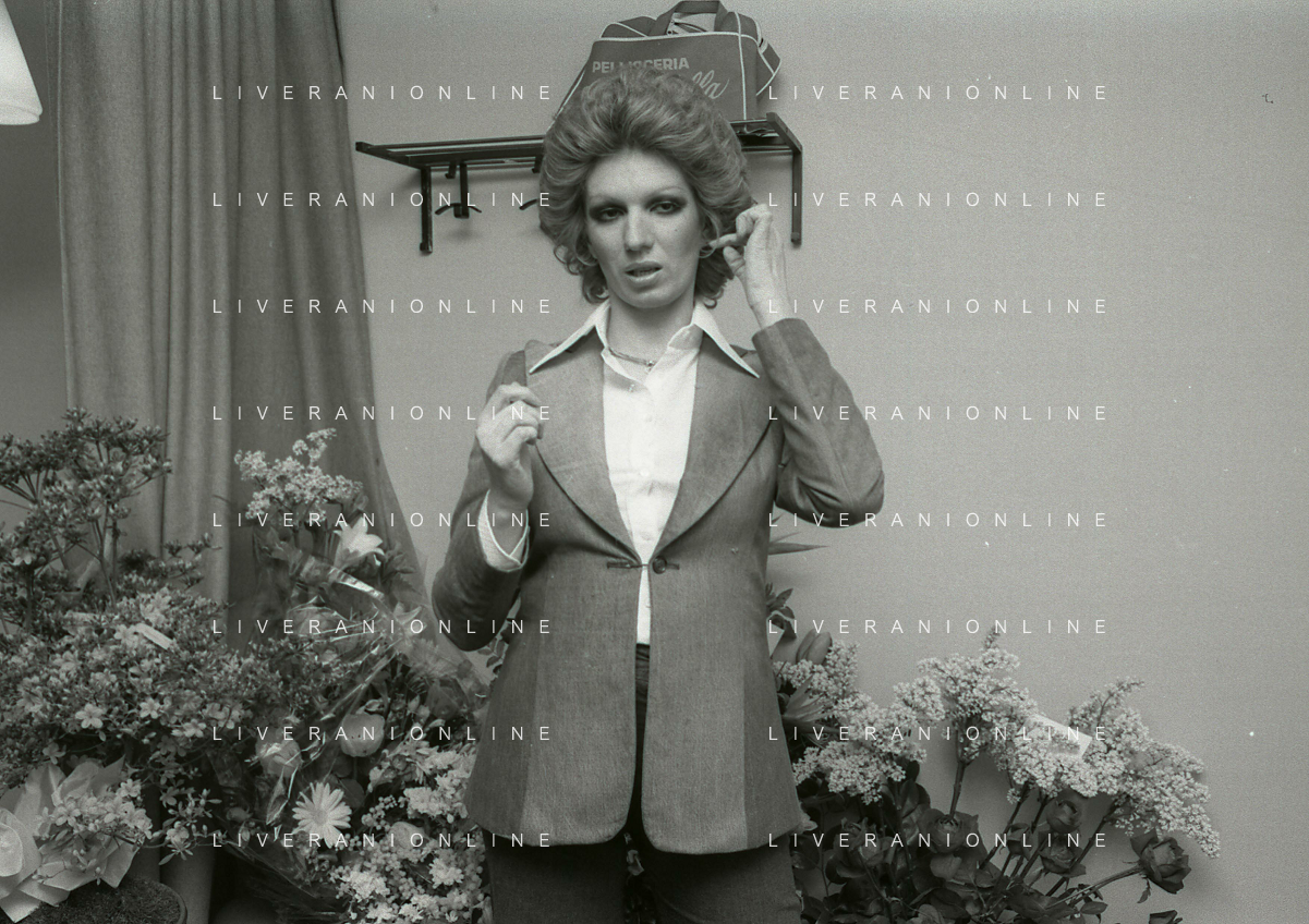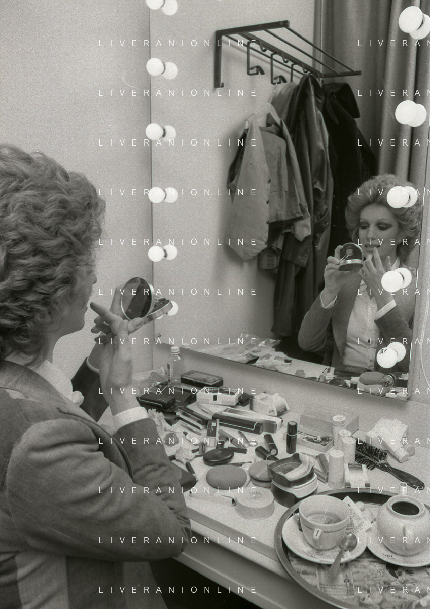 NEG-RETROSPETTIVA IVA ZANICCHI CANTANTE NELLA FOTO IVA ZANICCHI NELL'ANNO 1974 A MILANO NELLA COMMEDIA“ TRA DI NOI“ NEI CAMERINI CON TONY RENIS E IL PARRUCCHIERRE ROLANDO ELISEI AG ALDO LIVERANI SAS