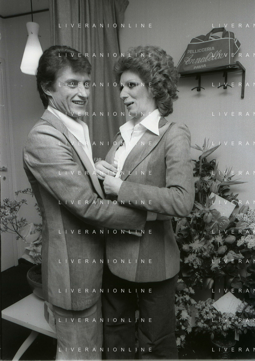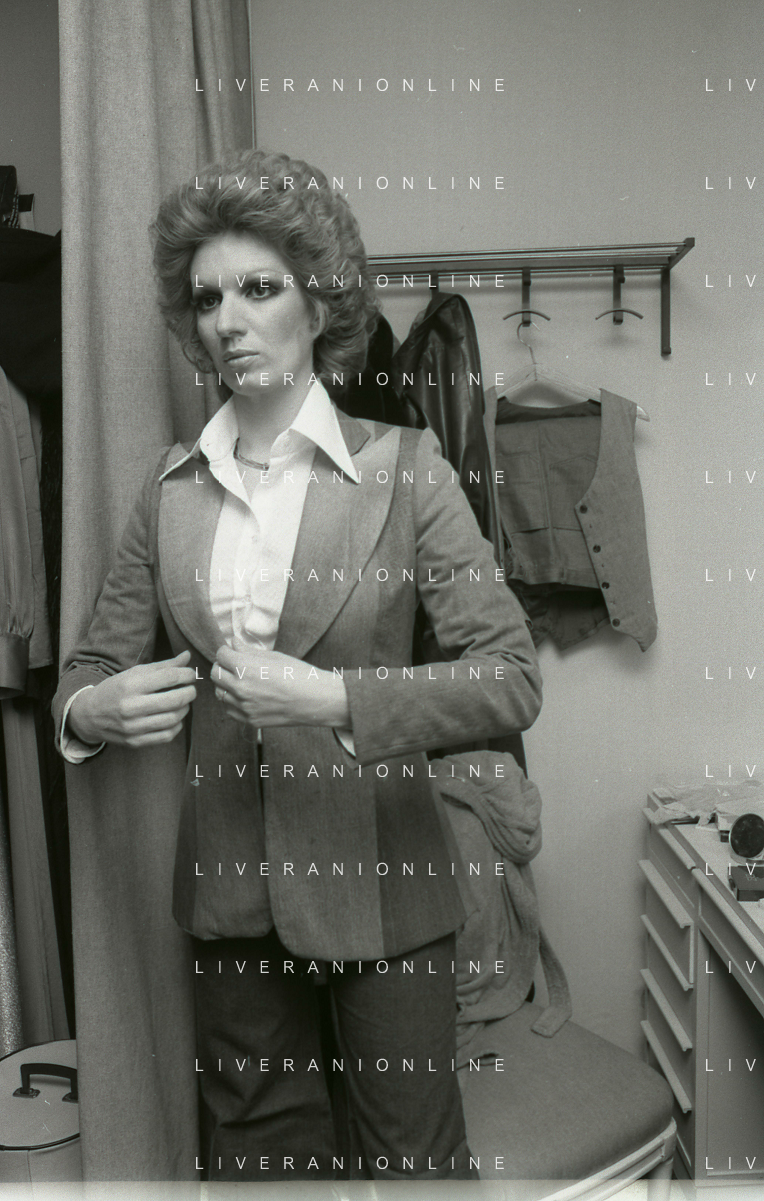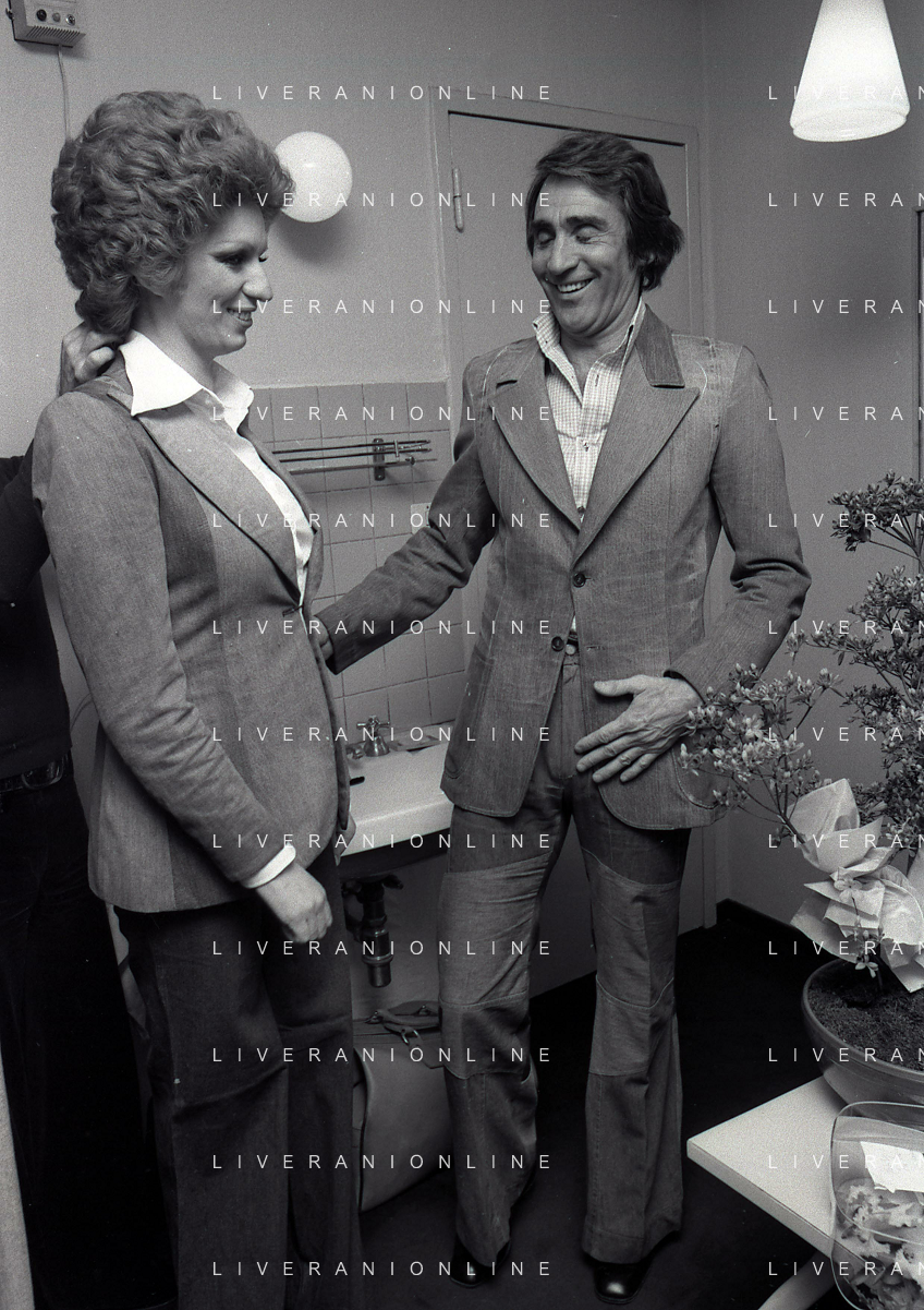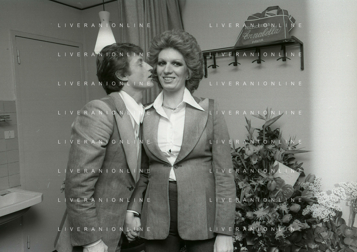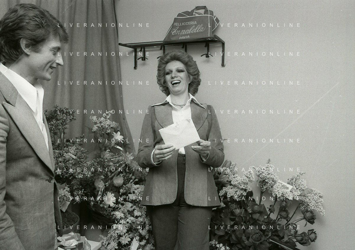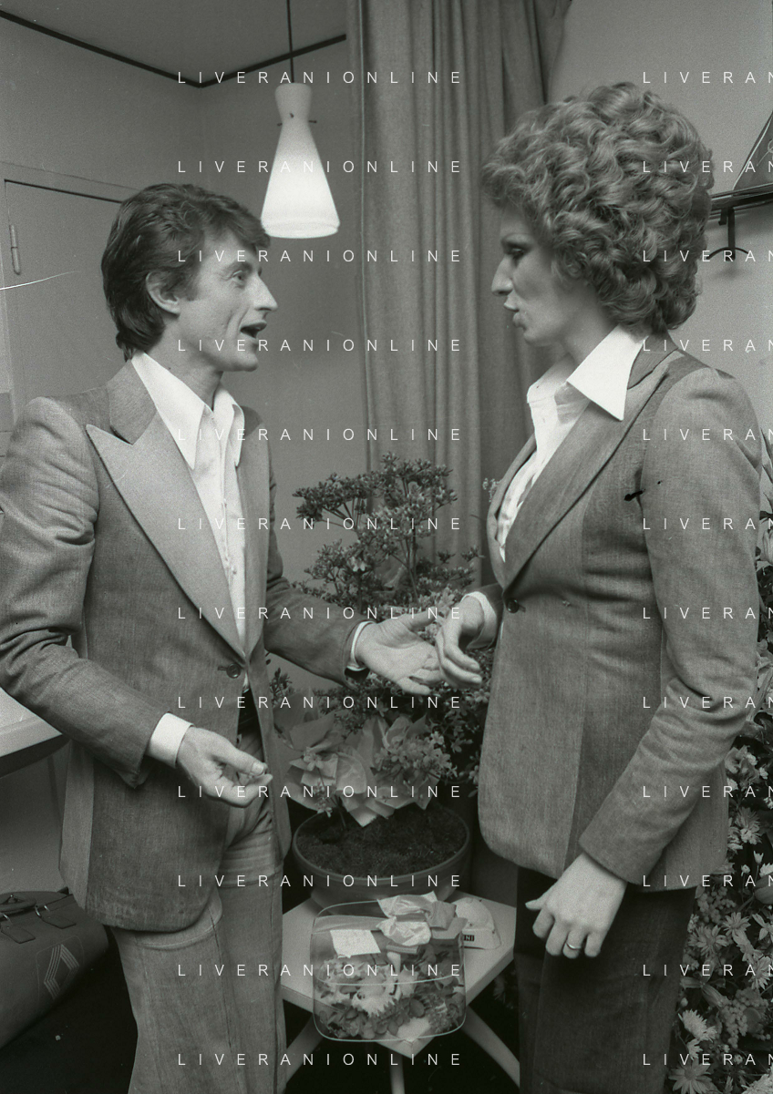 NEG-RETROSPETTIVA IVA ZANICCHI CANTANTE NELLA FOTO IVA ZANICCHI NELL'ANNO 1974 A MILANO NELLA COMMEDIA “TRA DI NOI“ NEI CAMERINI CON TONY RENIS AG ALDO LIVERANI SAS