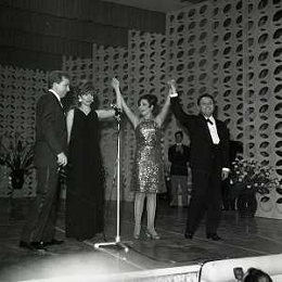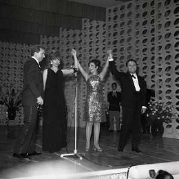 NEG-RETROSPETTIVA IVA ZANICCHI CANTANTE NELLA FOTO I PRESENTATORI RENATA MAURO E MIKE BONGIORNO CON IVA ZANICCHI E CLAUDIO VILLA NELL'ANNO 1967 AL FESTIVAL DELLA CANZONE ITALIANA DI SANREMO AG ALDO LIVERANI SAS
