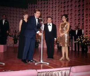 DIP-RETROSPETTIVA IVA ZANICCHI CANTANTE NELLA FOTO IVA ZANICCHI NELL'ANNO 1967 AL FESTIVAL DELLA CANZONE ITALIANA DI SANREMO CON MIKE BONGIORNO AG ALDO LIVERANI SAS