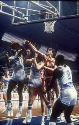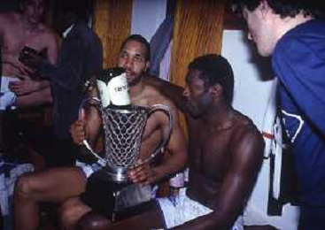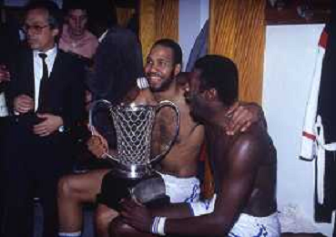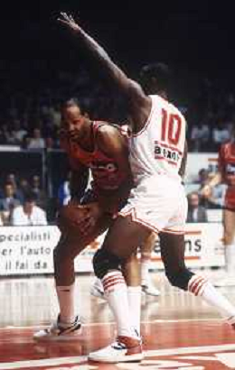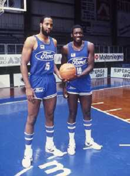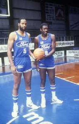 RETROSPETTIVA WALLACE BRYANT BASKET NELLA FOTO WALLACE BRYANT CON LA MAGLIA DELLA FORD CANTU' BASKET NELL'ANNO 1982-1983 CON JIM BREWER VINCE LA COPPA CAMPIONI AG ALDO LIVERANI SAS