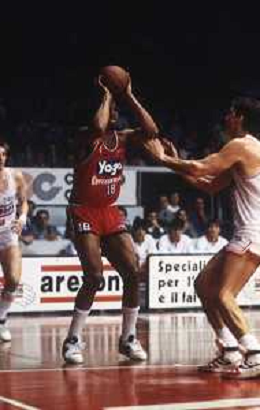 RETROSPETTIVA WALLACE BRYANT BASKET NELLA FOTO WALLACE BRYANT CON LA MAGLIA DELLA FORD CANTU' BASKET NELL'ANNO 1982-1983 VINCE LA COPPA CAMPIONI AG ALDO LIVERANI SAS