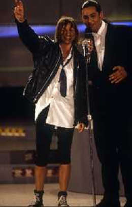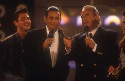 DIAP-RETROSPETTIVA ROSARIO TINDARO FIORELLO SHOWMAN-IMITATORE -COMICO E CANTANTE NELLA FOTO ROSARIO TINDARO FIORELLO CON VITTORIO SALVETTI E FEDERICA PANICUCCI AL FESTIVALBAR NELL'ANNO 1993 AG ALDO LIVERANI SAS