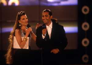 DIAP-RETROSPETTIVA ROSARIO TINDARO FIORELLO SHOWMAN-IMITATORE -COMICO E CANTANTE NELLA FOTO ROSARIO TINDARO FIORELLO CON FEDERICA PANICUCCI NELL'ANNO 1993 AL FESTIVAL DI SANREMO AG ALDO LIVERANI SAS