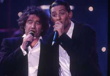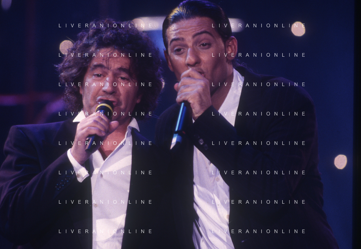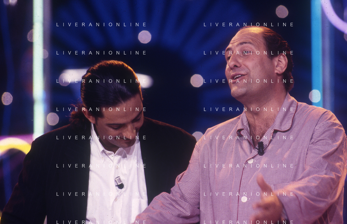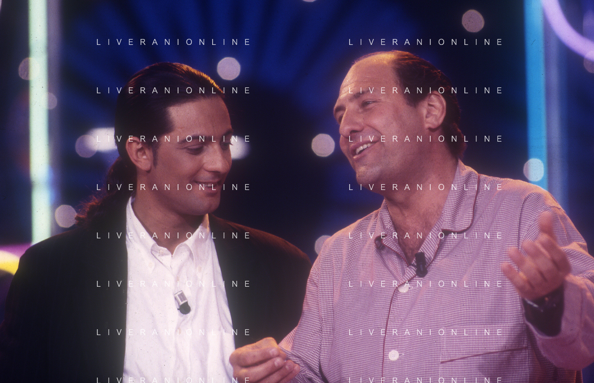 DIAP-RETROSPETTIVA ROSARIO TINDARO FIORELLO SHOWMAN-IMITATORE -COMICO E CANTANTE NELLA FOTO ROSARIO TINDARO FIORELLO CON FAUSTO LEALI NELL'ANNO 1995 NELLA TRASMISSIONE TELEVISIVA “NON DIMENTICARE LO SPAZZOLINO DA DENTI“ AG ALDO LIVERANI SAS