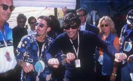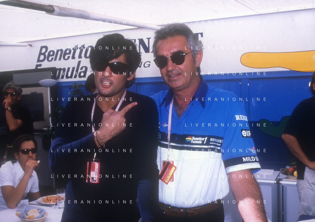 DIAP- RETROSPETTIVA ROSARIO TINDARO FIORELLO SHOWMAN-IMITATORE -COMICO E CANTANTE NELLA FOTO ROSARIO TINDARO FIORELLO CON FLAVIO BRIATORE AG ALDO LIVERANI SAS