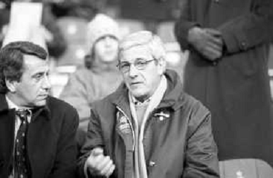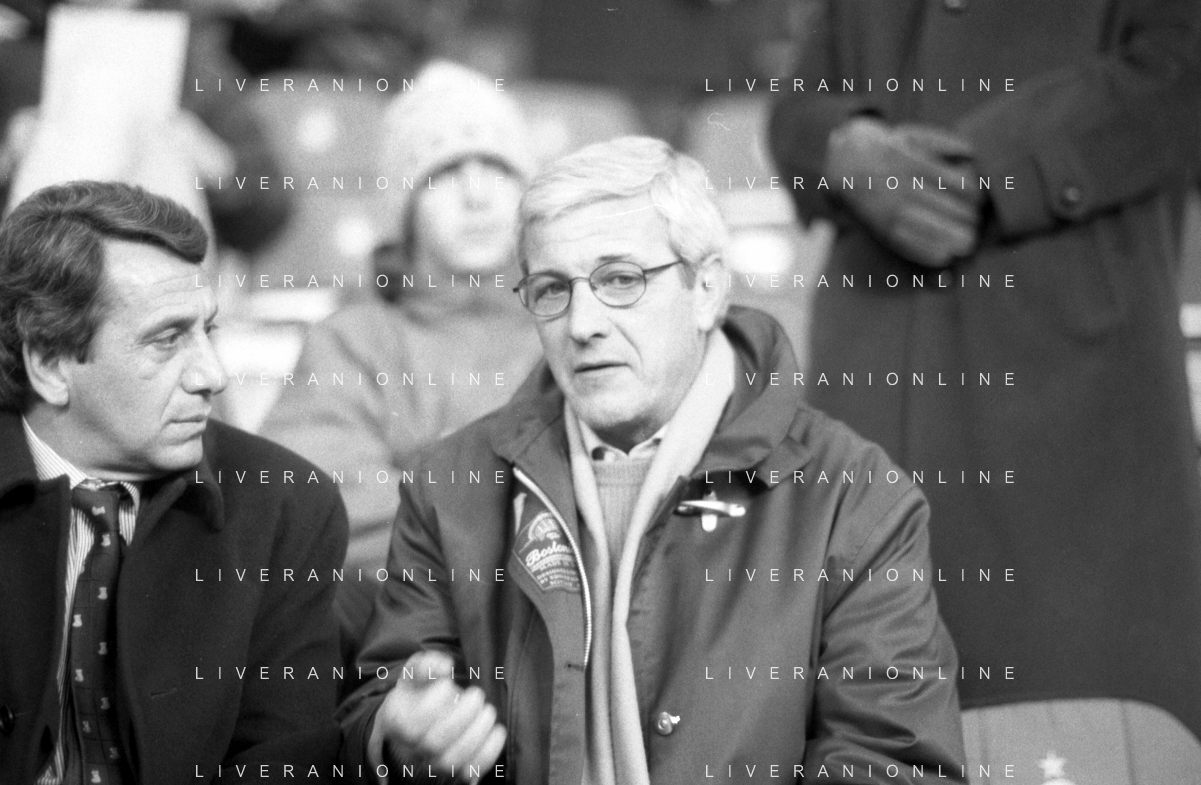 Neg- RETROSPETTIVA DOMENICO ARNUZZO DIRETTORE SPORTIVO SAMPDORIA CALCIO NELLA FOTO CON MARCELLO LIPPI IN TRIBUNA ALLO STADIO NELL'ANNO 1996-1997 AG ALDO LIVERANI SAS