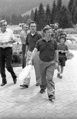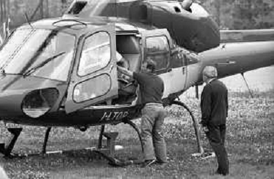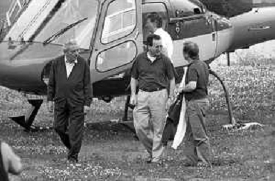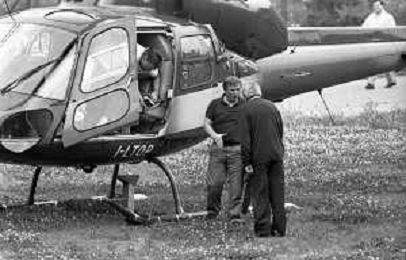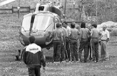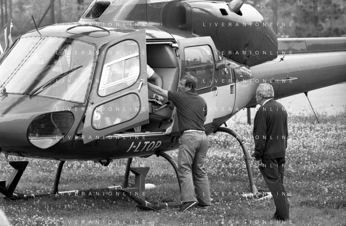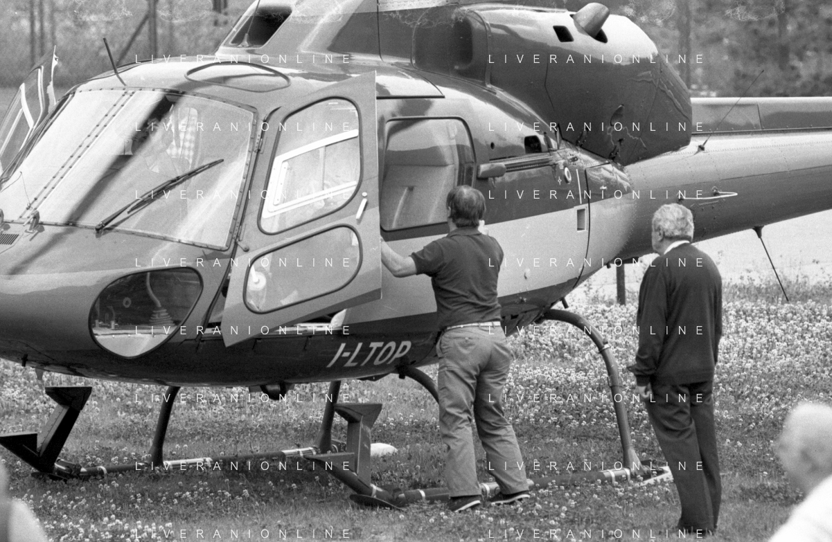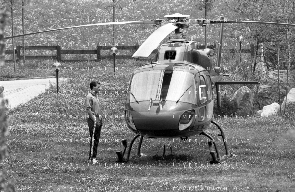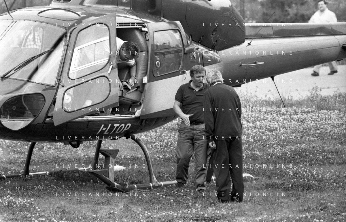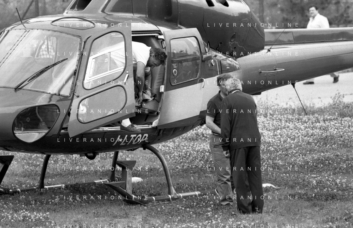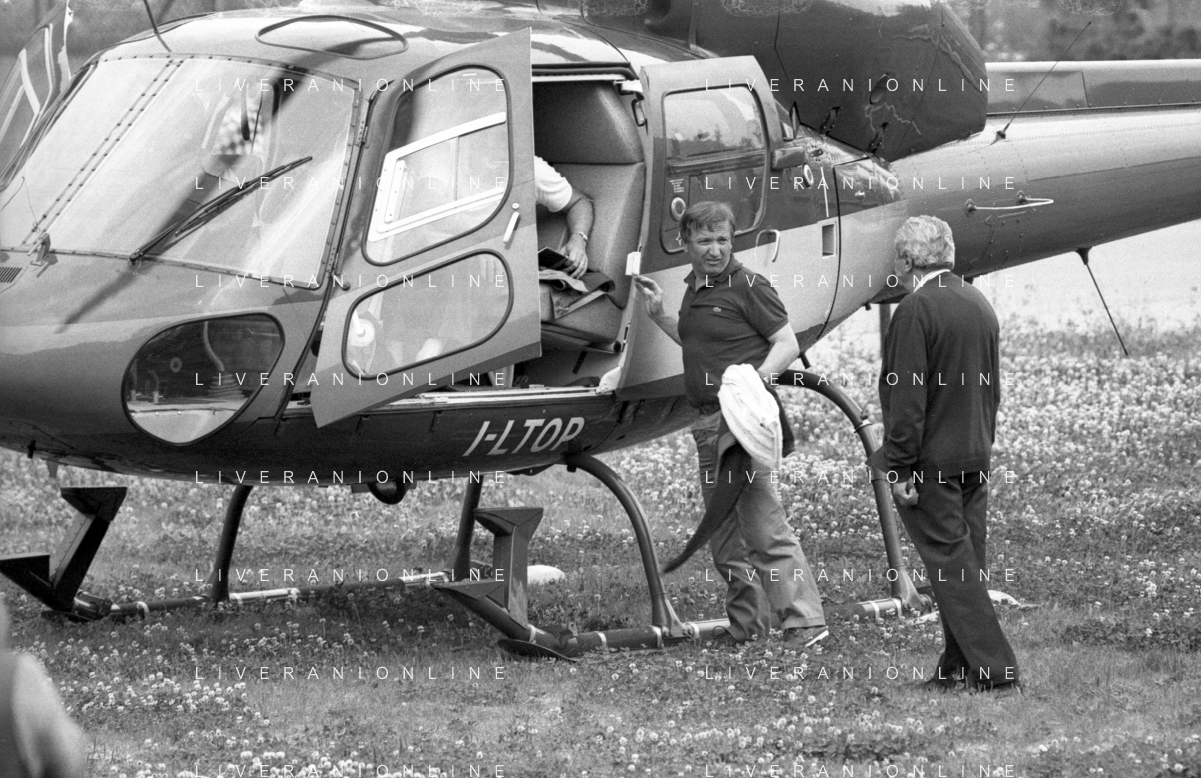 Neg- RETROSPETTIVA GIAN MAURO BORSANO PRESIDENTE TORINO CALCIO NELLA FOTO AL SUO ARRIVO CON L'ELICOTTERO AL RITIRO ESTIVO DI BORNO NELL'ANNO 1990-1991 AG ALDO LIVERANI SAS