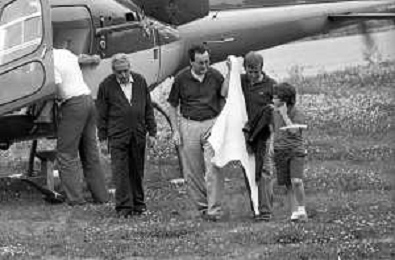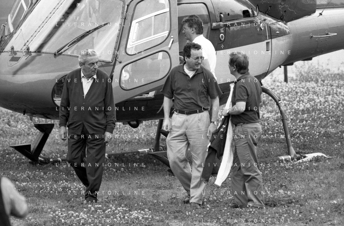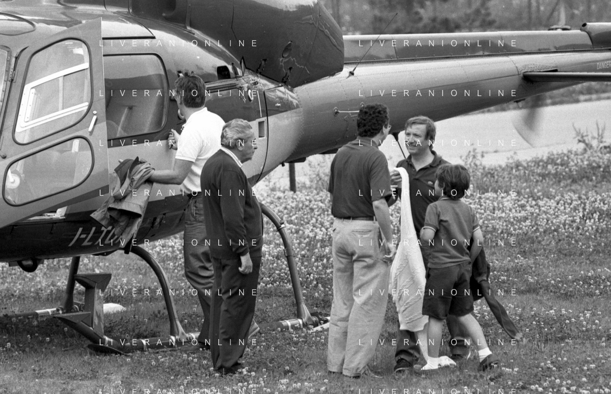 Neg- RETROSPETTIVA GIAN MAURO BORSANO PRESIDENTE TORINO CALCIO NELLA FOTO CON IL FIGLIO GIOVANNI AL SUO ARRIVO CON L'ELICOTTERO AL RITIRO ESTIVO DI BORNO NELL'ANNO 1990-1991 AG ALDO LIVERANI SAS
