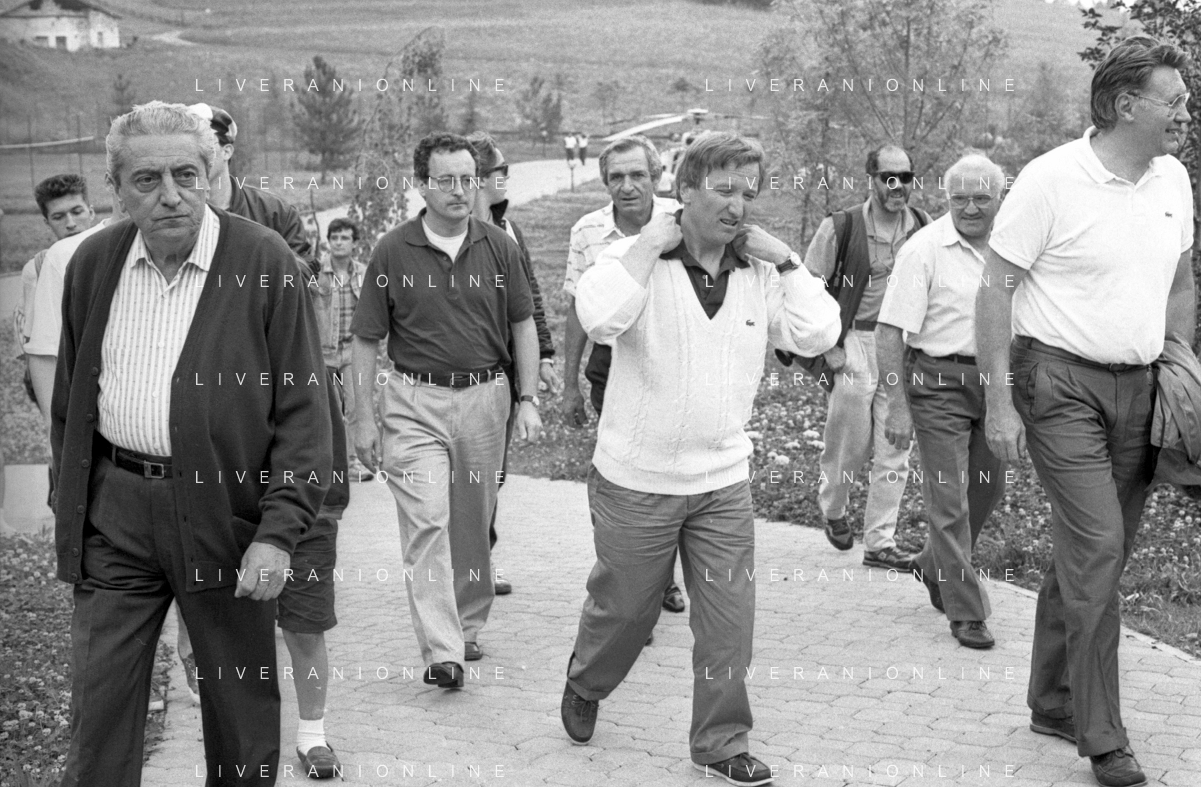 Neg- RETROSPETTIVA GIAN MAURO BORSANO PRESIDENTE TORINO CALCIO NELLA FOTO AL SUO ARRIVO AL RITIRO ESTIVO DI BORNO NELL'ANNO 1990-1991 AG ALDO LIVERANI SAS