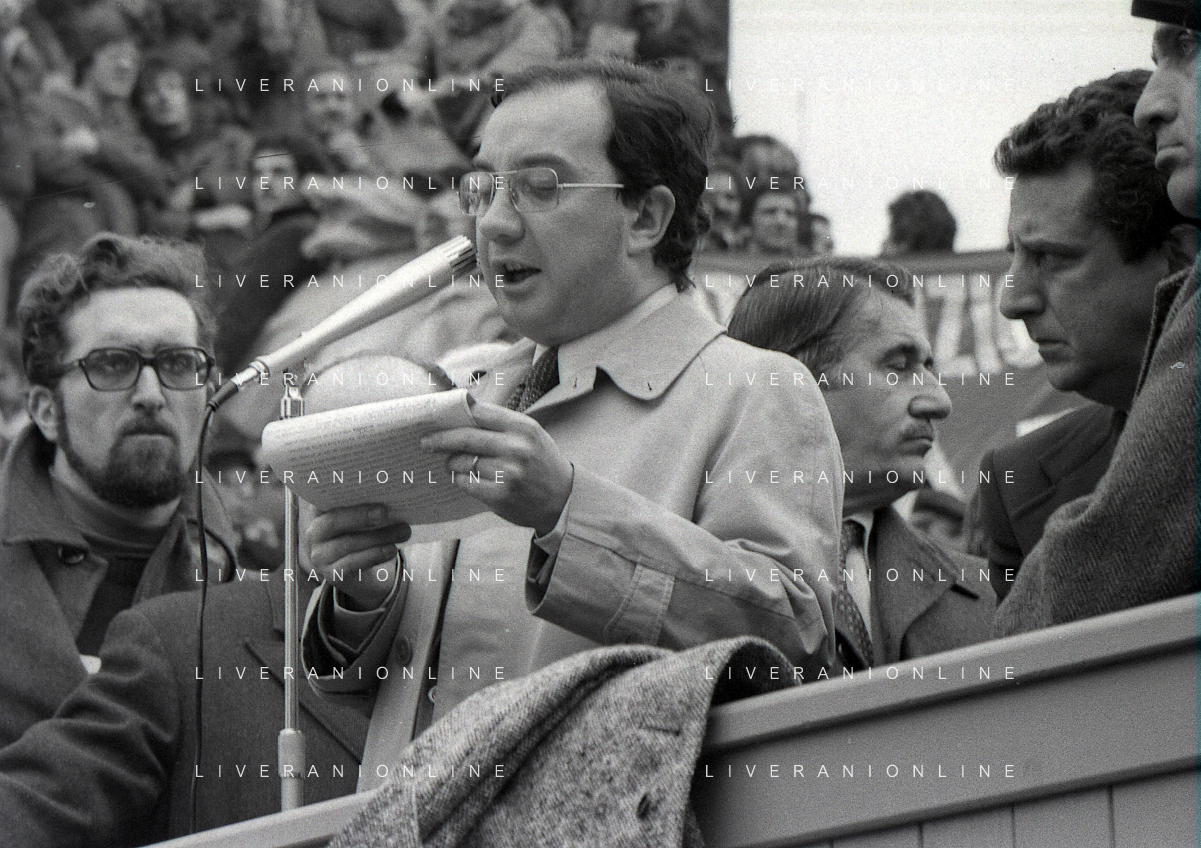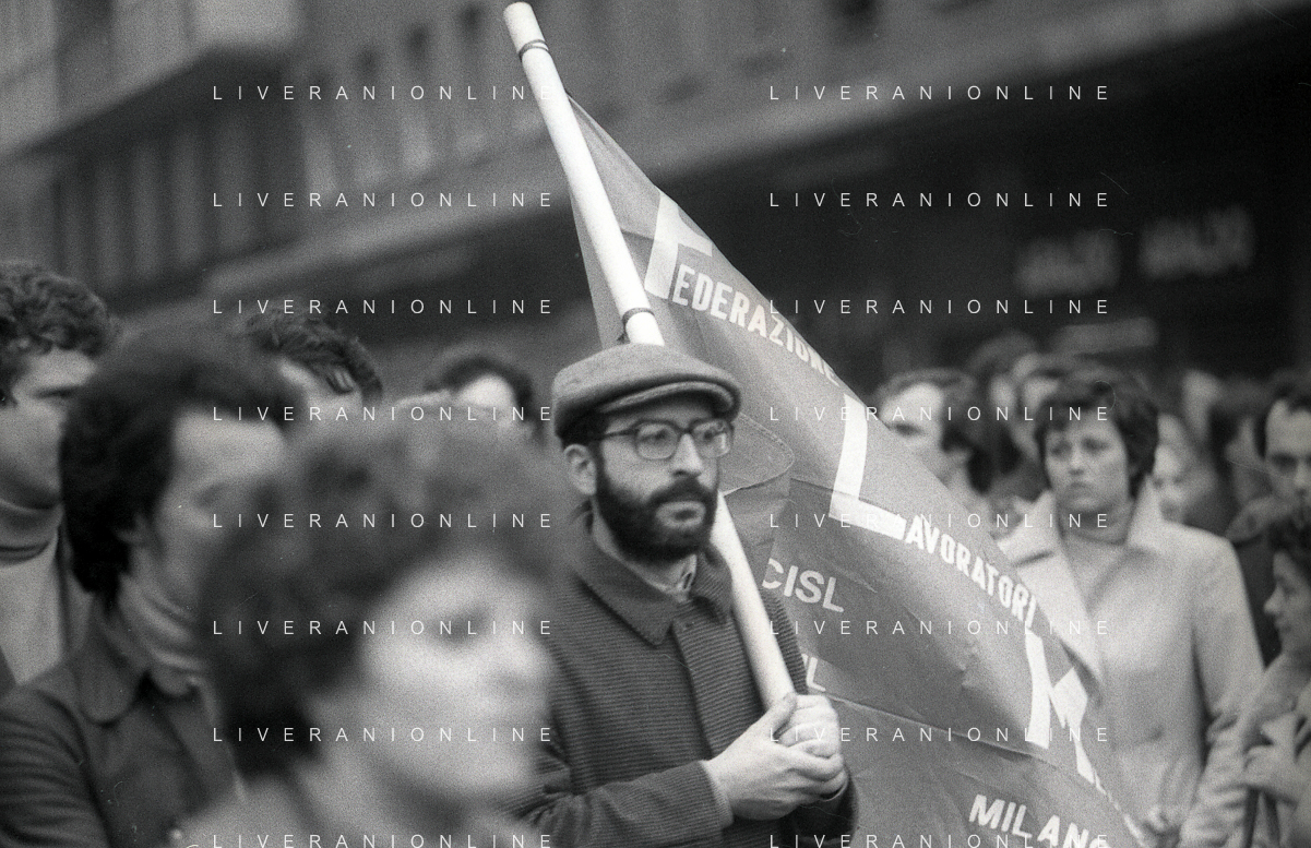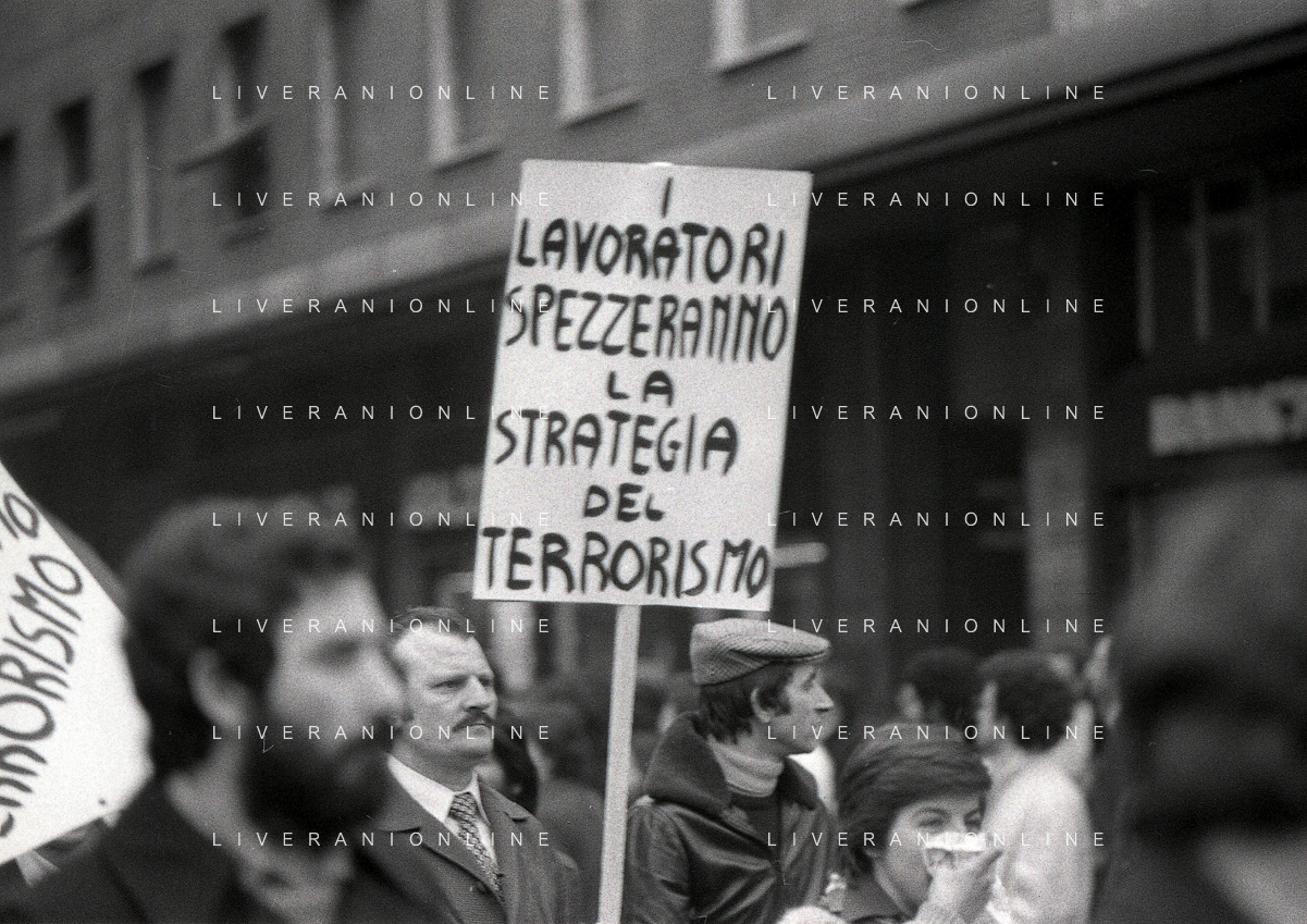 NEG- 1978 MILANO MANIFESTAZIONE PER LA LIBERAZIONE DELL'ONOREVOLE ALDO MORO RAPITO A ROMA DELLE BRIGATE ROSSE IL SINDACO CARLO TOGNOLI AG ALDO LIVERANI SAS