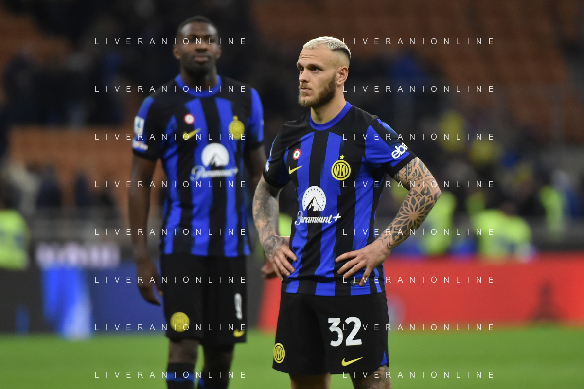 Inter vs Napoli nella foto delusione Federico Dimarco (Inter) e sulla SX Marcus Thuram (Inter) Milano 17-03-2024 Stadio Giuseppe Meazza - San Siro Campionato Serie A TIM - 29a giornata foto Roberto Garavaglia/Agenzia Aldo Liverani sas/ AGENZIA ALDO LIVERANI SAS