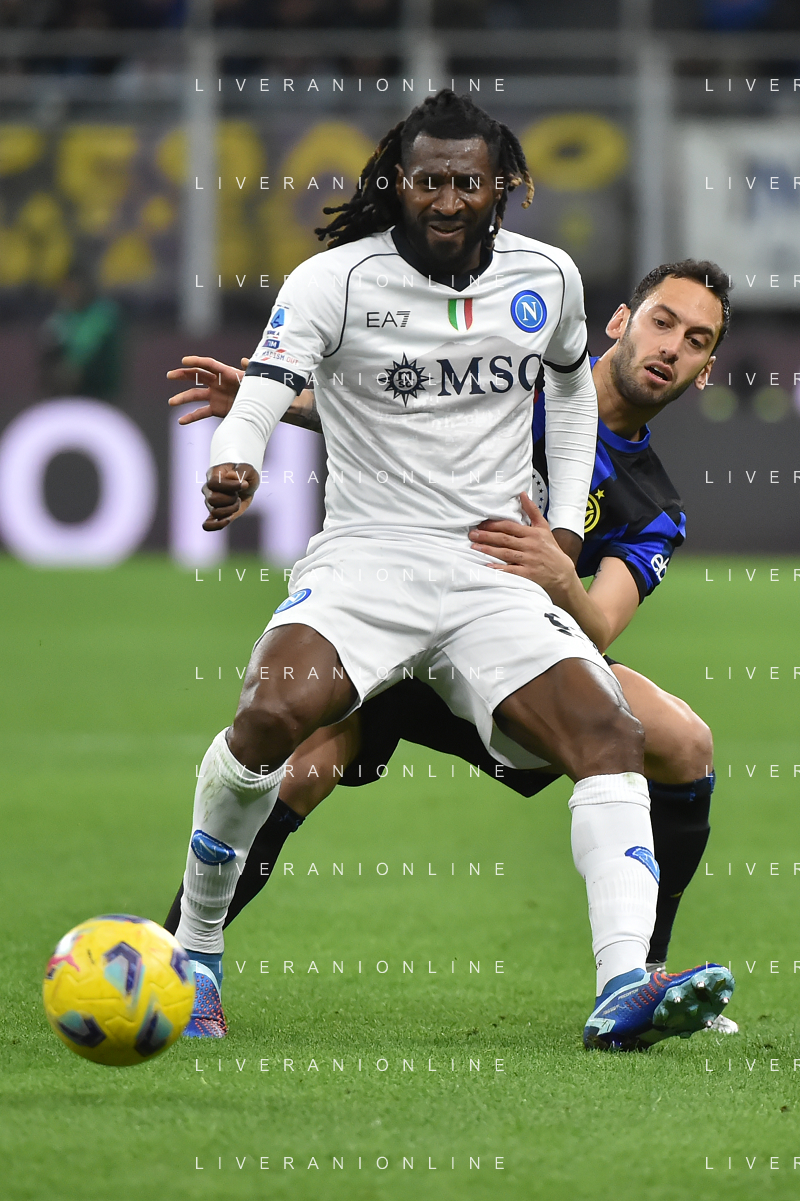 Inter vs Napoli nella foto Andre' Franck Zambo Anguissa (Napoli) e dietro Hakan Calhanoglu (Inter) Milano 17-03-2024 Stadio Giuseppe Meazza - San Siro Campionato Serie A TIM - 29a giornata foto Roberto Garavaglia/Agenzia Aldo Liverani sas/ AGENZIA ALDO LIVERANI SAS