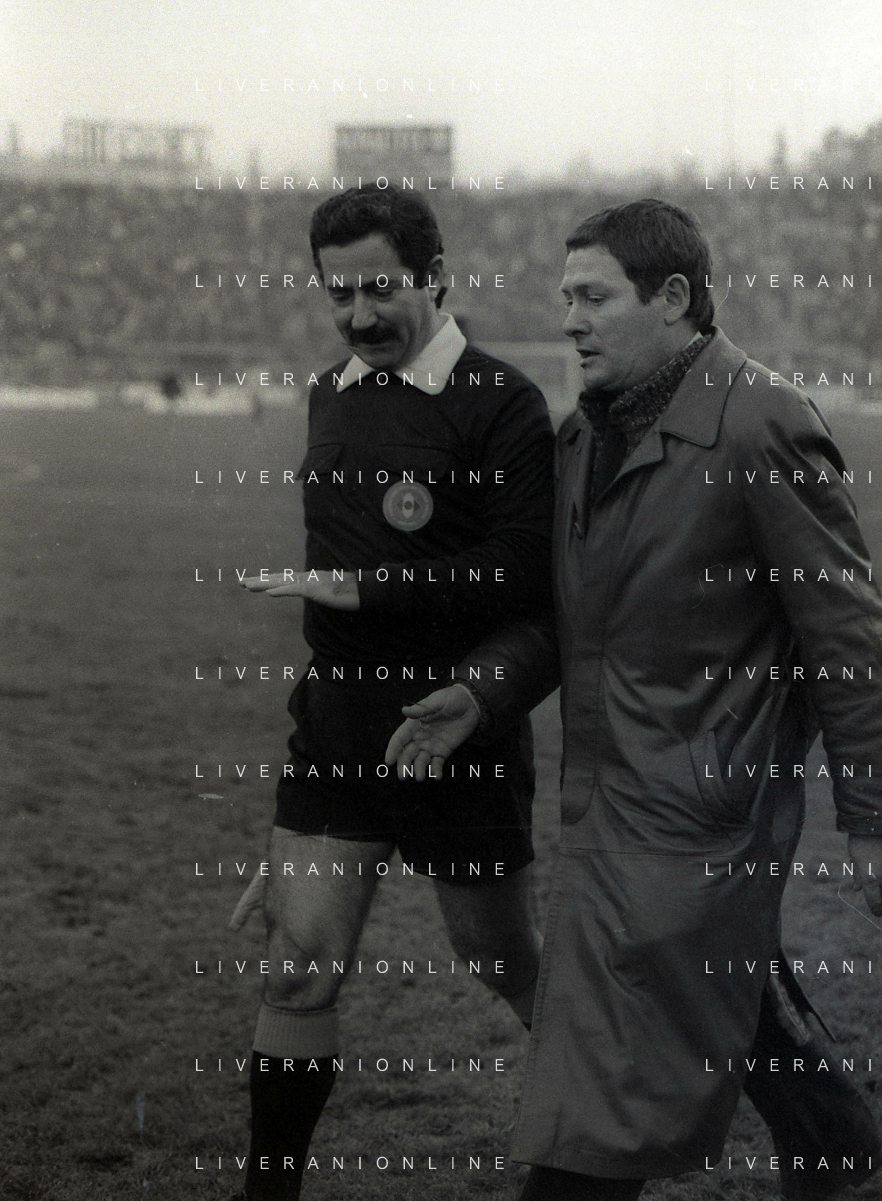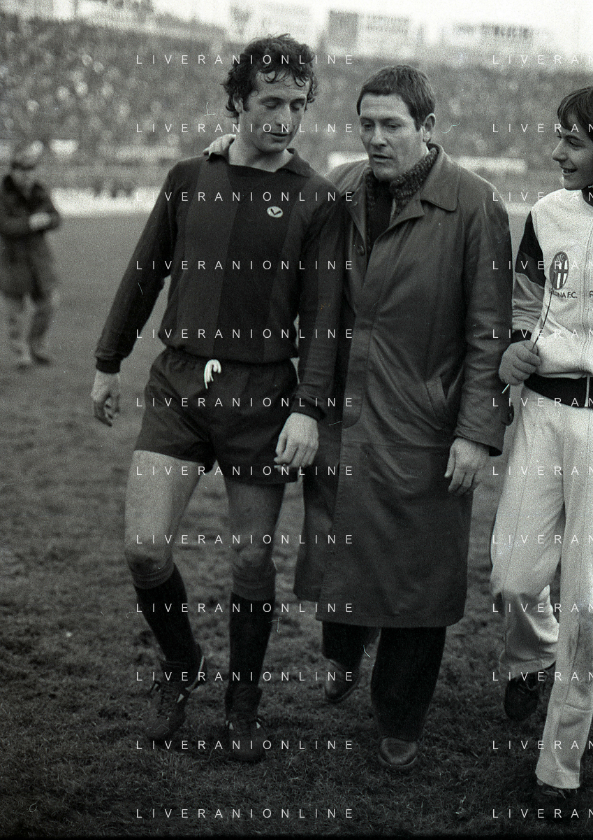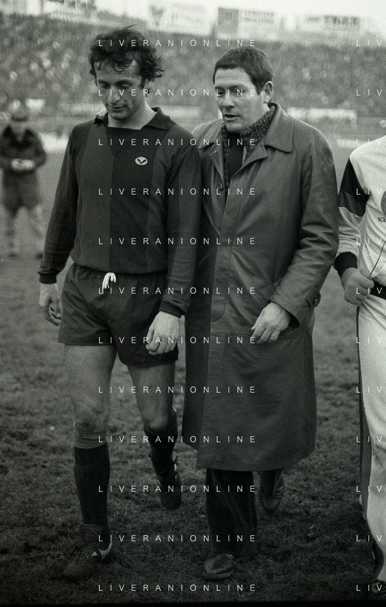 NEG-21-12-1980 BOLOGNA CAMPIONATO DI CALCIO SERIE A BOLOGNA FIORENTINA 2-1 NELLA FOTO GIGI RADICE ALLENATORE BOLOGNA CALCIO CON GIUSEPPE DOSSENA AG ALDO LIVERANI SAS
