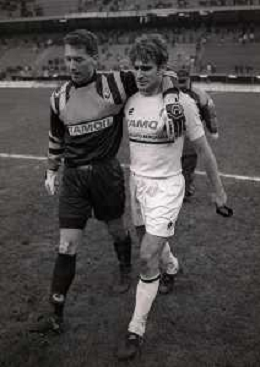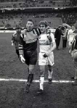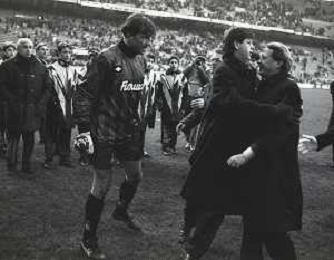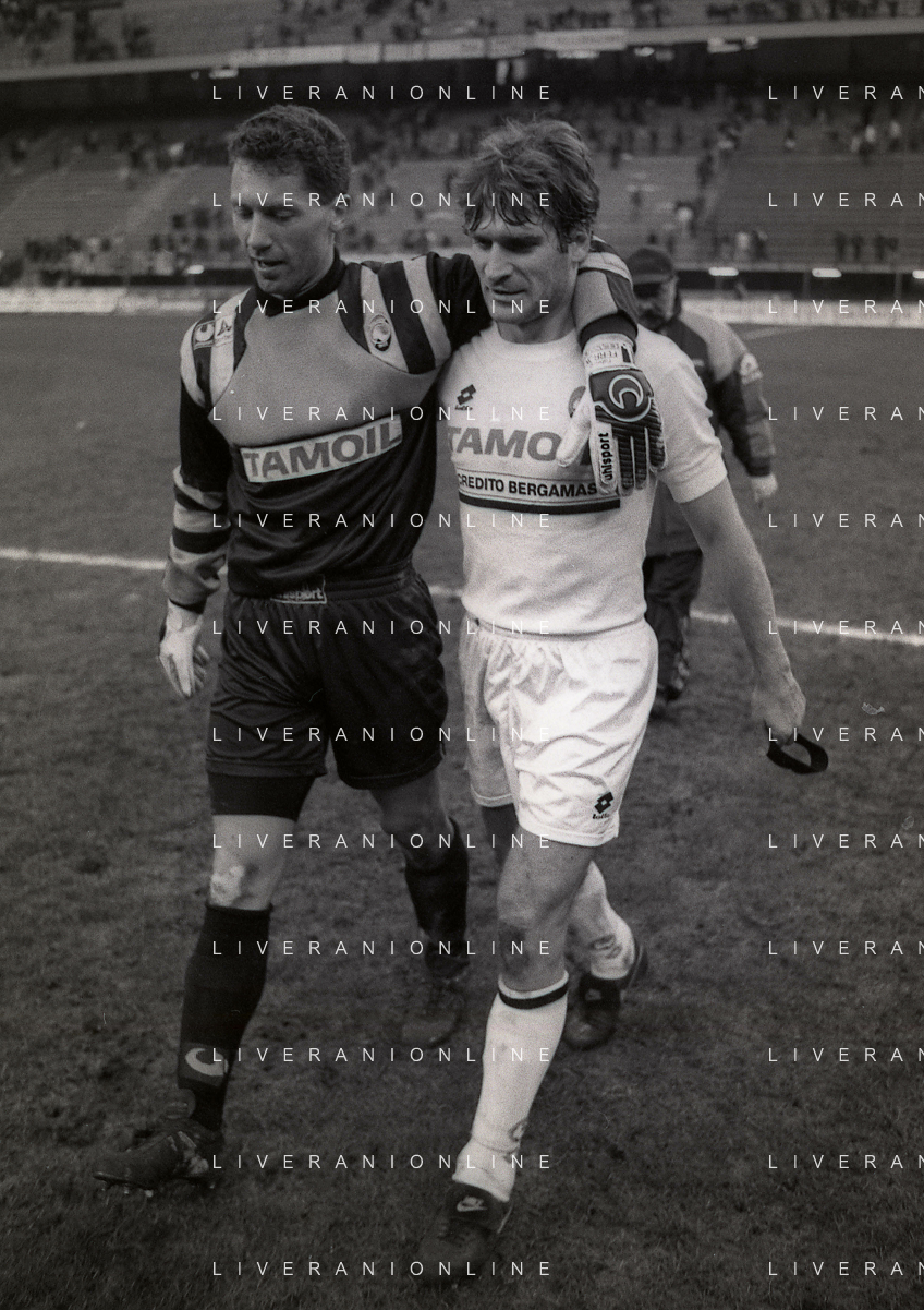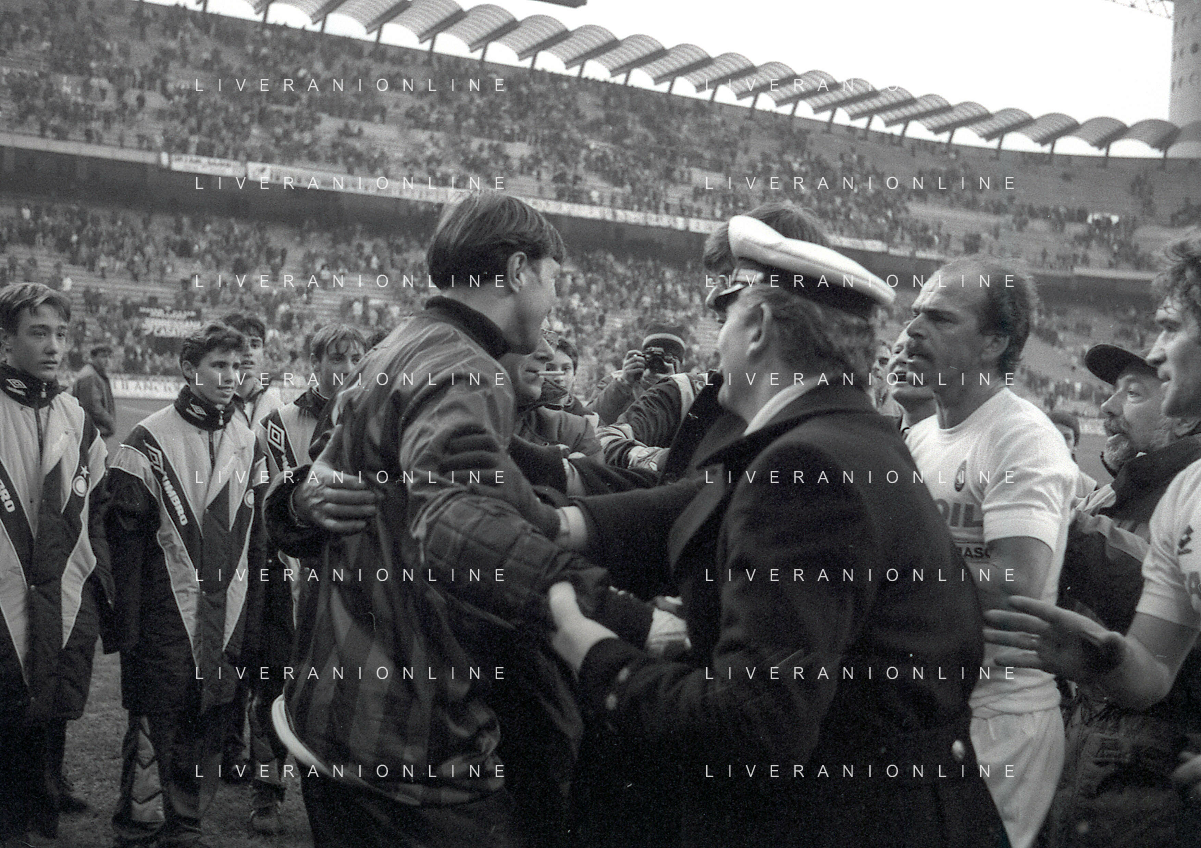 NEG-02-01-1994 MILANO CAMPIONATO DI CALCIO SERIE A INTER-ATALANTA 1-2 NELLA FOTO ANDREA VALDINOCI DISCUTE CON WALTER ZENGA A FINE GARA AG ALDO LIVERANI SAS