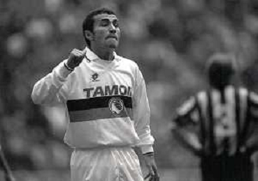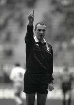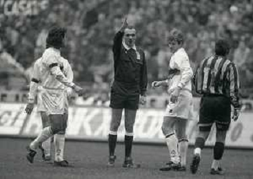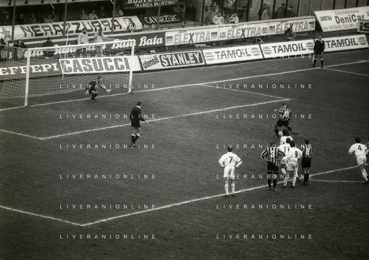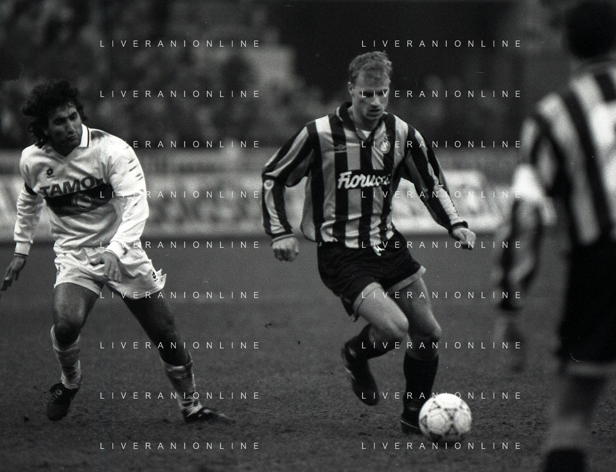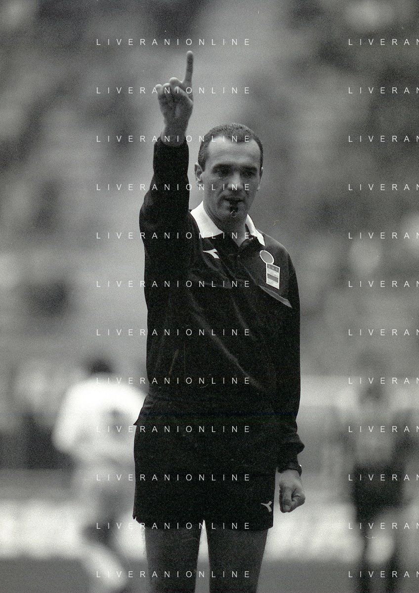 NEG-02-01-1994 MILANO CAMPIONATO DI CALCIO SERIE A INTER-ATALANTA 1-2 NELLA FOTO FABRIZIO FERRON CON L'ARBITRO GIANNI BESCHIN E SIMONE PAVAN AG ALDO LIVERANI SAS